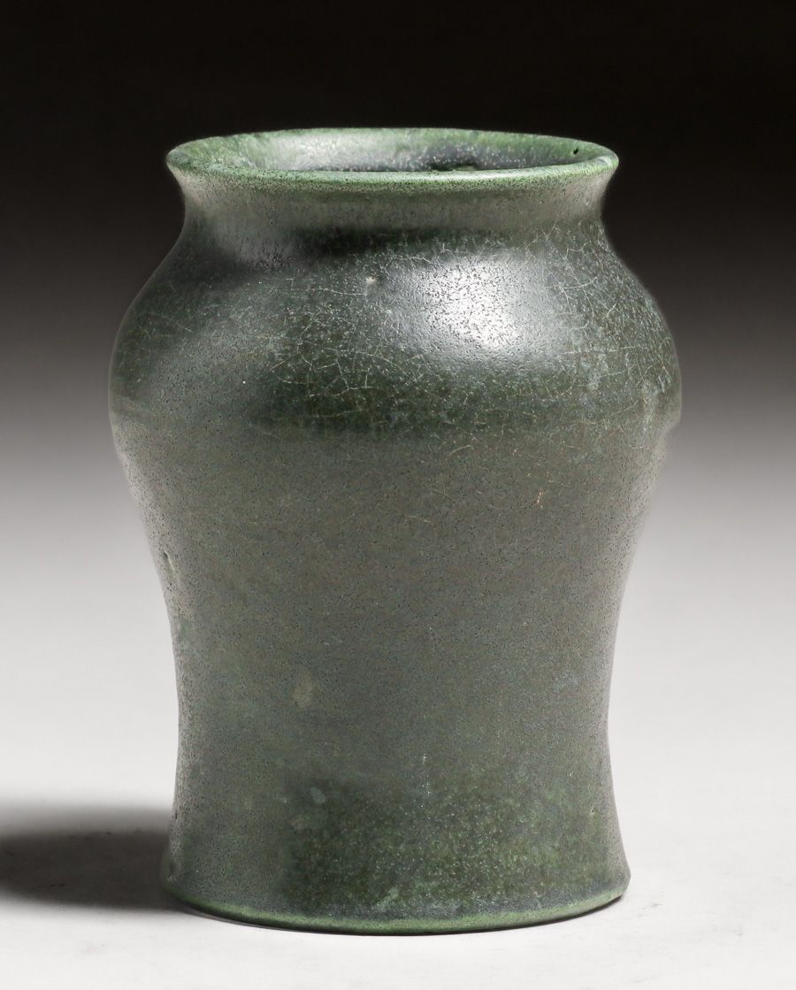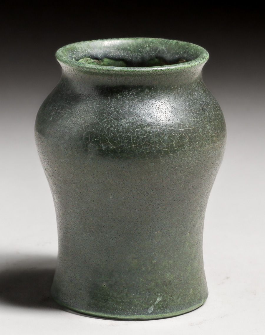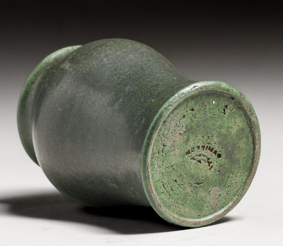 Merrimac Pottery Matte Green Vase c1910. Signed. Perfect condition. 5"h x 3.5"d SOLD