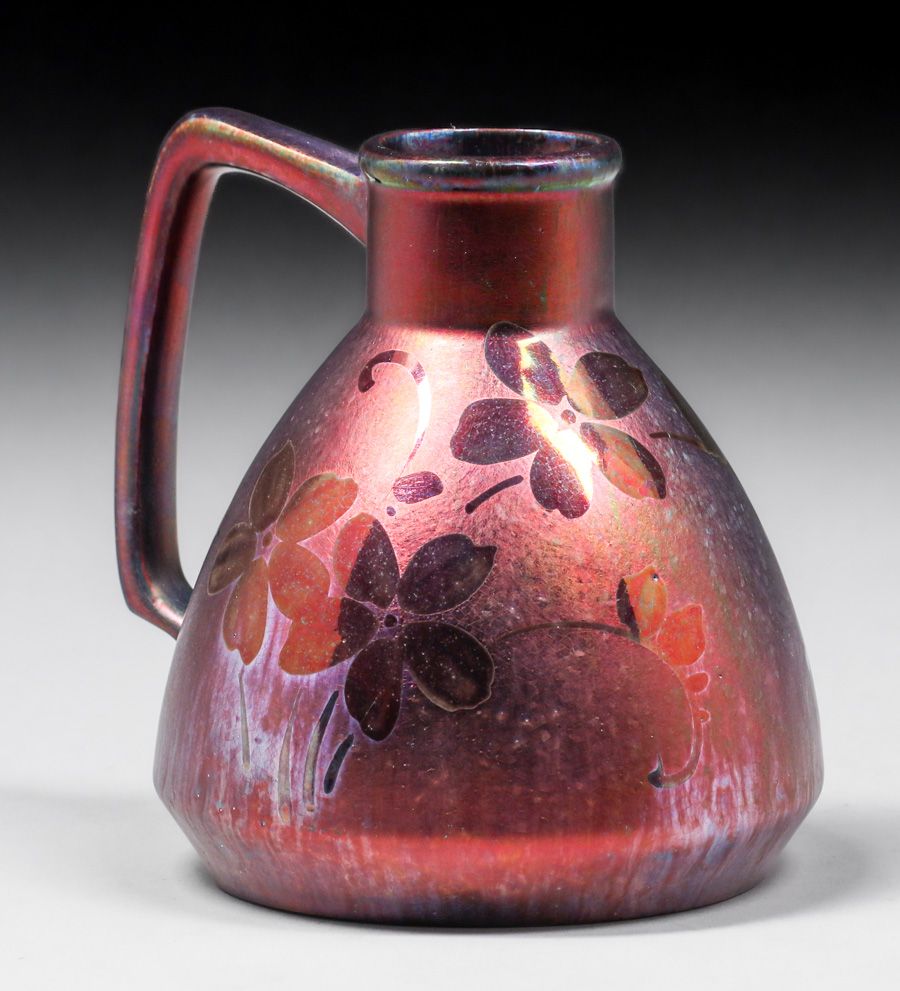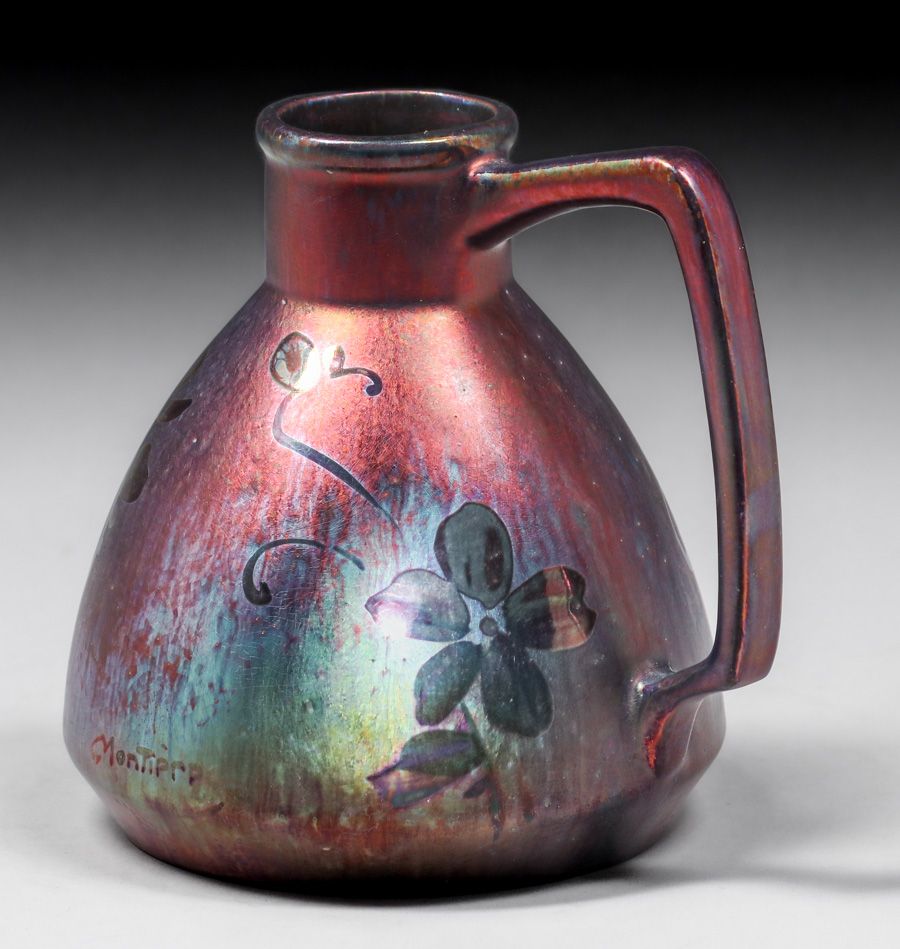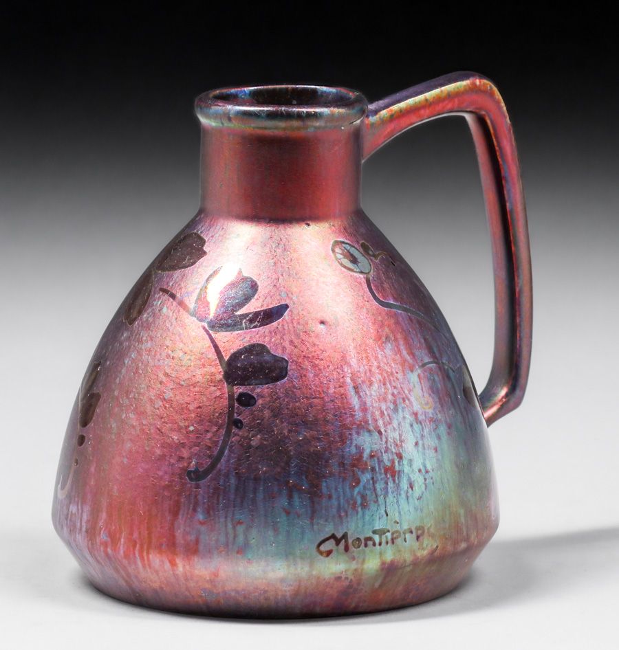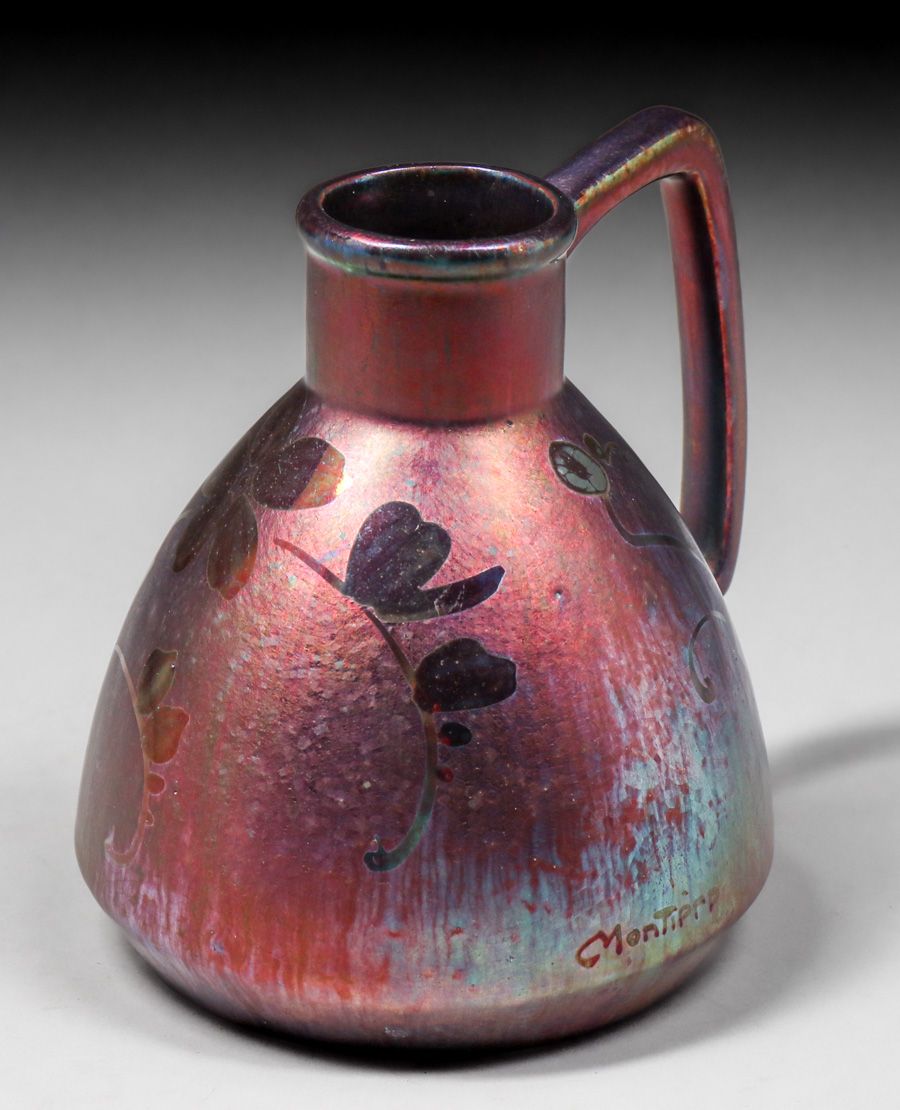 - Montieres French Iridescent One-Handled Pitcher c1905