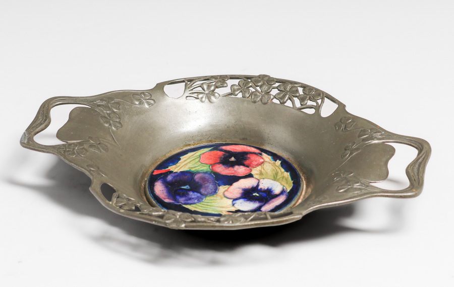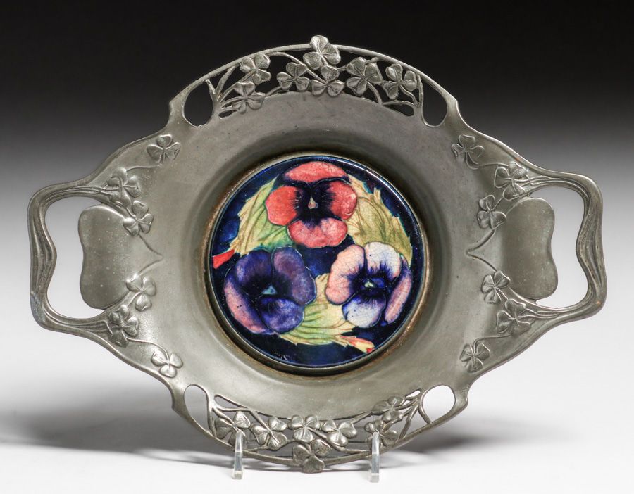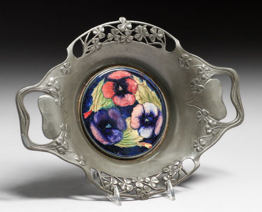 - Liberty & Co Tudric Art Nouveau Pewter & Moorcroft Tile Two-Handled Tray c1900s