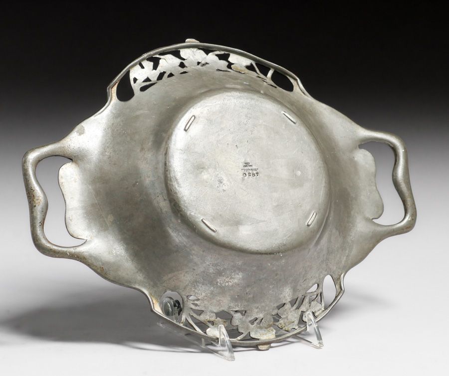 Liberty & Co Tudric Art Nouveau Pewter & Moorcroft Tile Two-Handled Tray c1900s. Signed "Tudric". Excellent original patina. 11"w x 8.5" x 1.5" $950
