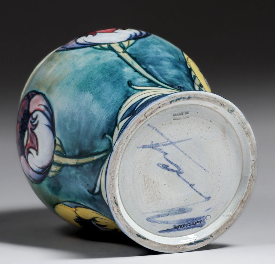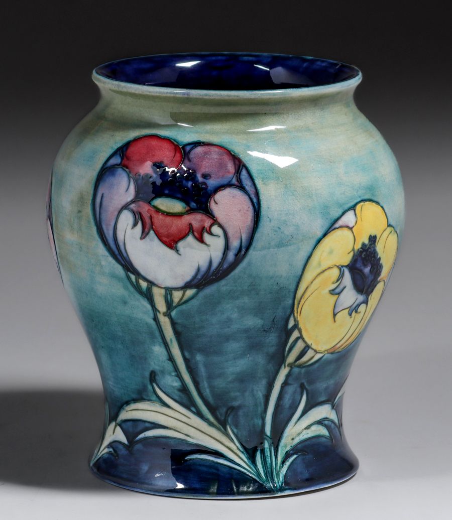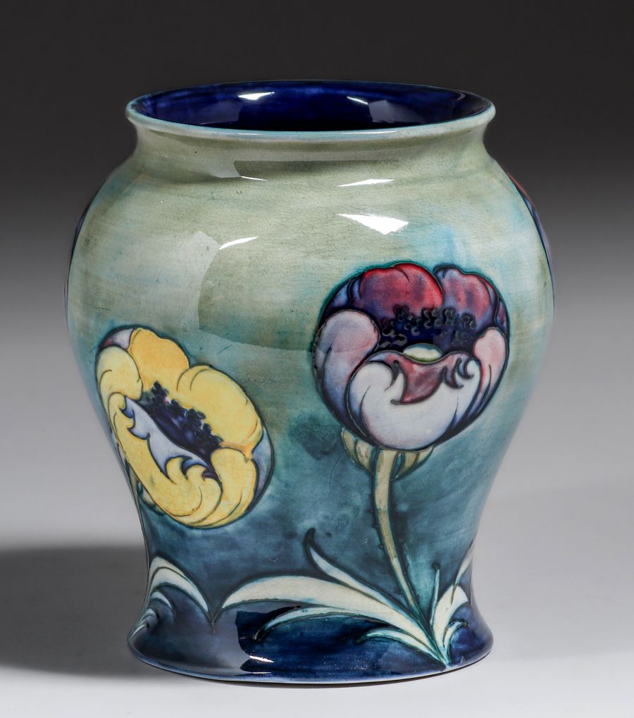 Moorcroft Pottery Poppy Vase c1910. Signed. Invisible professional restoration to rim chip, otherwise perfect condition. 7 5/8"h x 6.25"d SOLD
