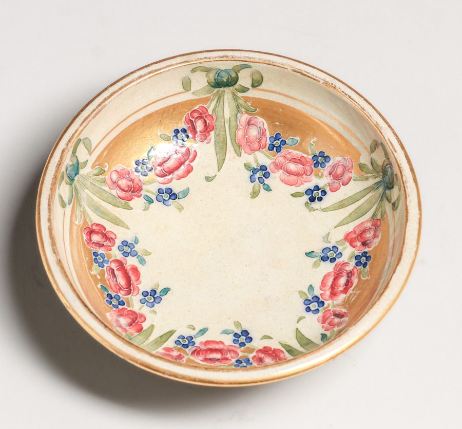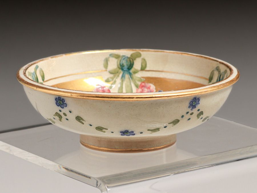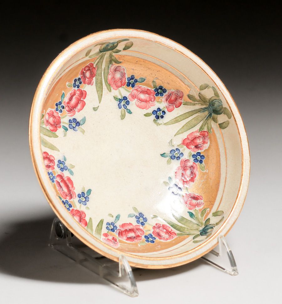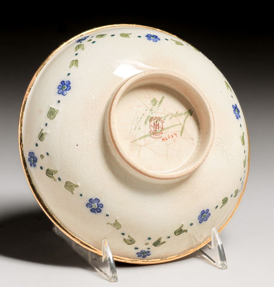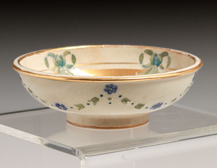 William Moorcroft - James Macintyre & Co Decorated Bowl c1900s. Signed. Some slight rubs to gold leaf edge, otherwise perfect condition. 5.5"d x 1.75"h $550
