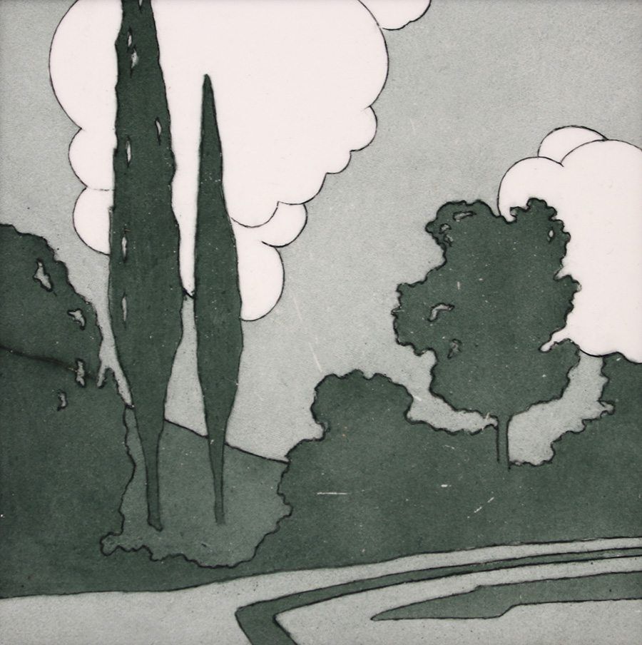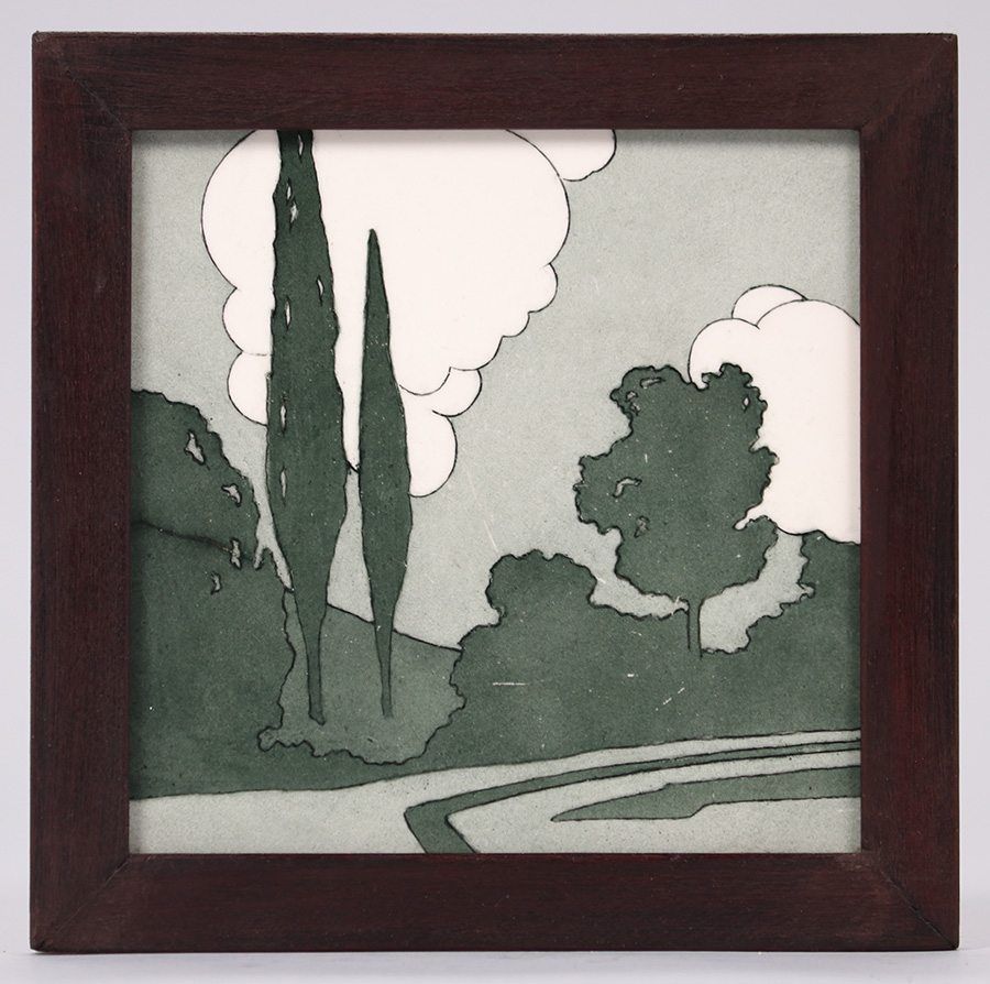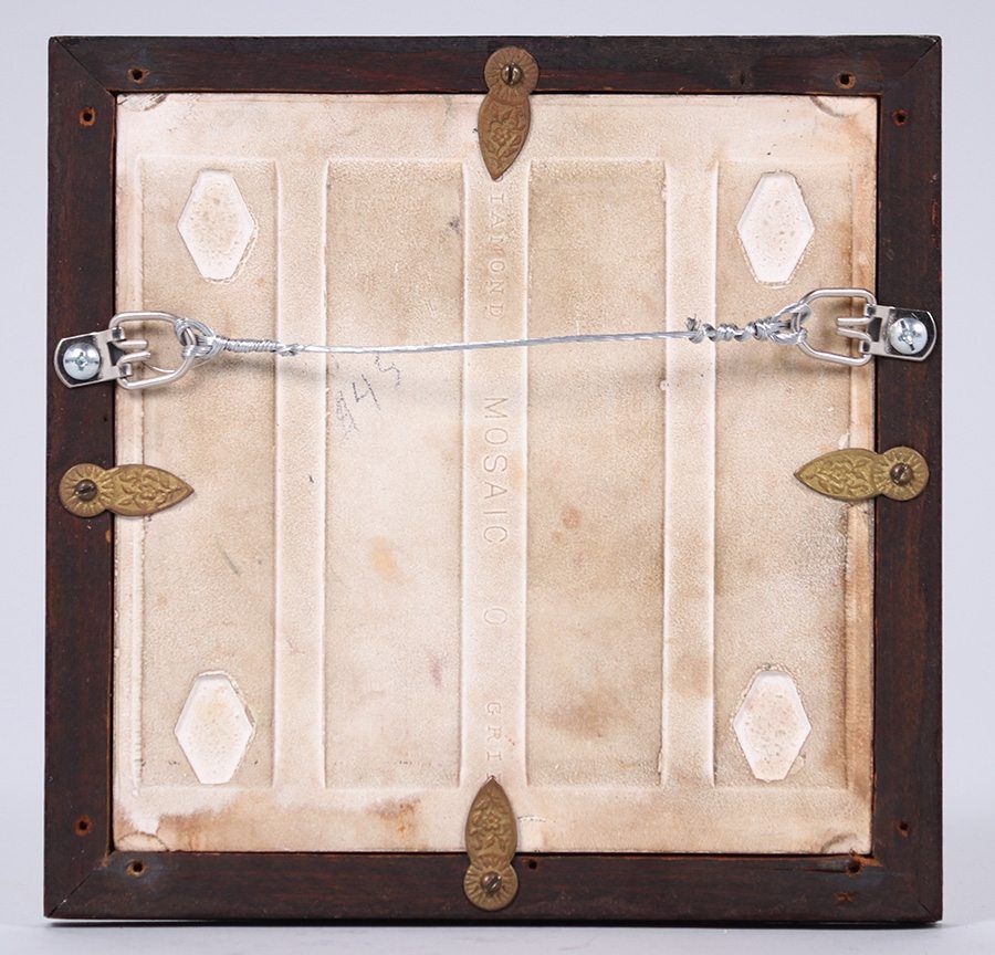 Mosaic Tile Co framed trivet tile. Great tonalist Arts & Crafts design. Light scuffs to surface, otherwise perfect condition. 6"square. Frame 7.25"sq SOLD