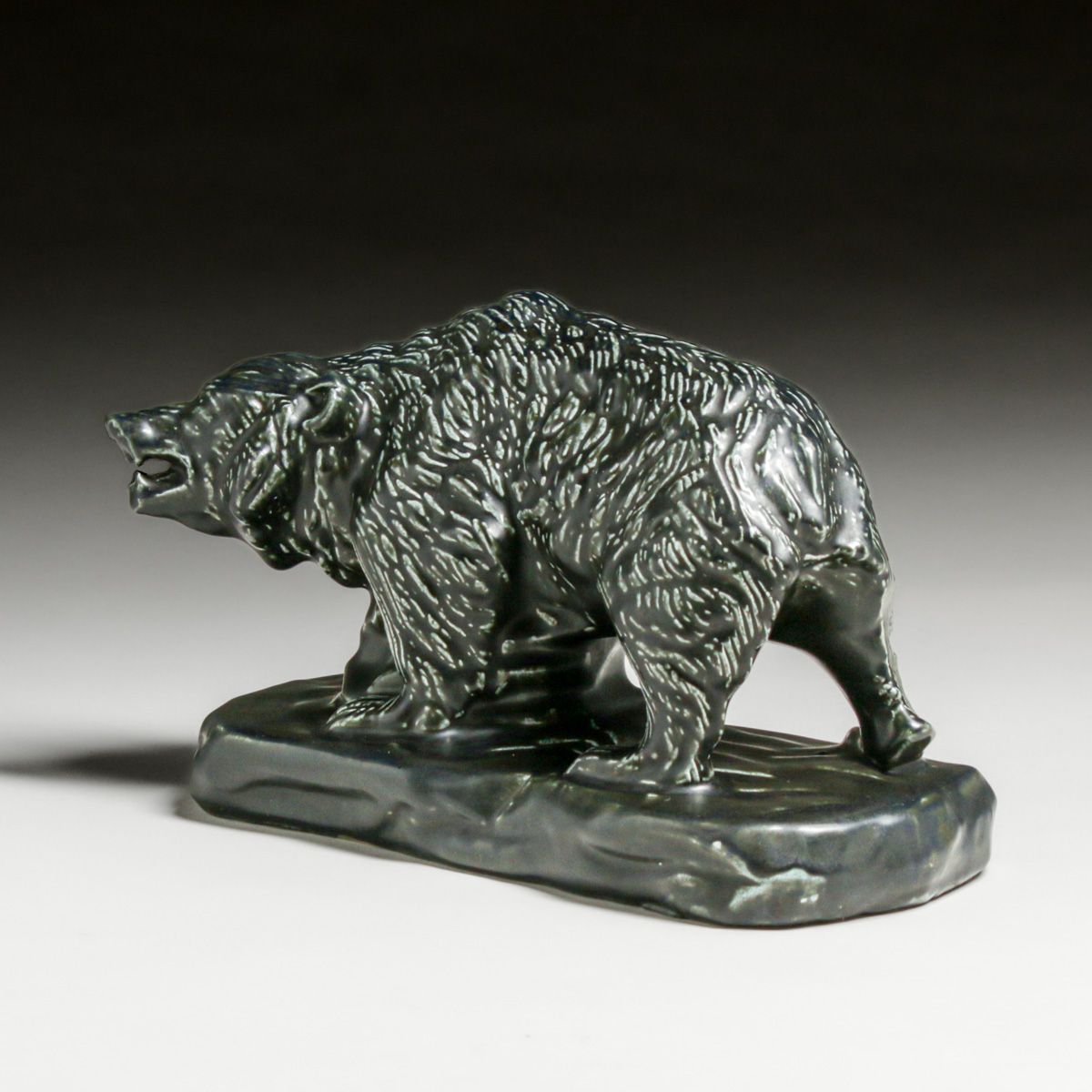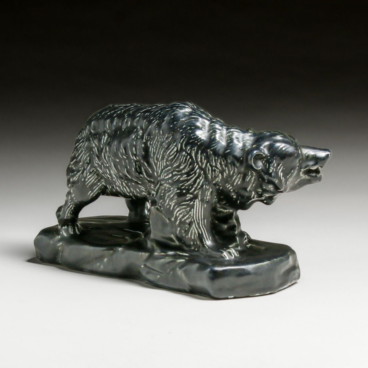 Mosaic Tile Company - Zanesville, OH Grizzly Bear c1915. Signed. Tight 1" firing line in base, otherwise perfect condition. 10"w x 4" x 6"
