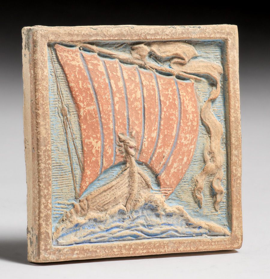 - Moresque Tile Co - Oakland, CA Viking Ship Tile c1920s