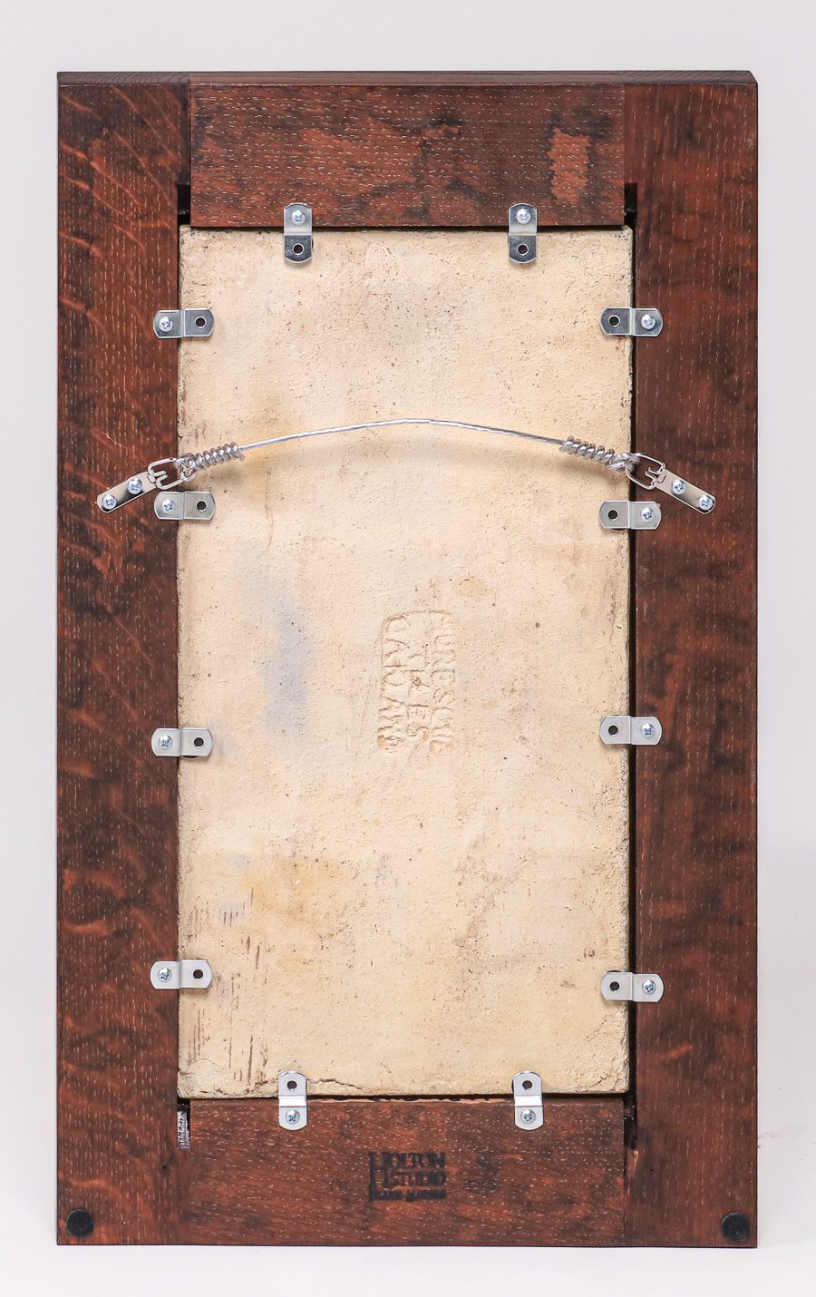 Moresque Tile - Oakland Yosemite Vernal Falls Tile c1920s. Signed. Perfect condition. Tim Holton custom oak frame. 16”h x 8”w. Frame 21.75”h x 13”w $4500