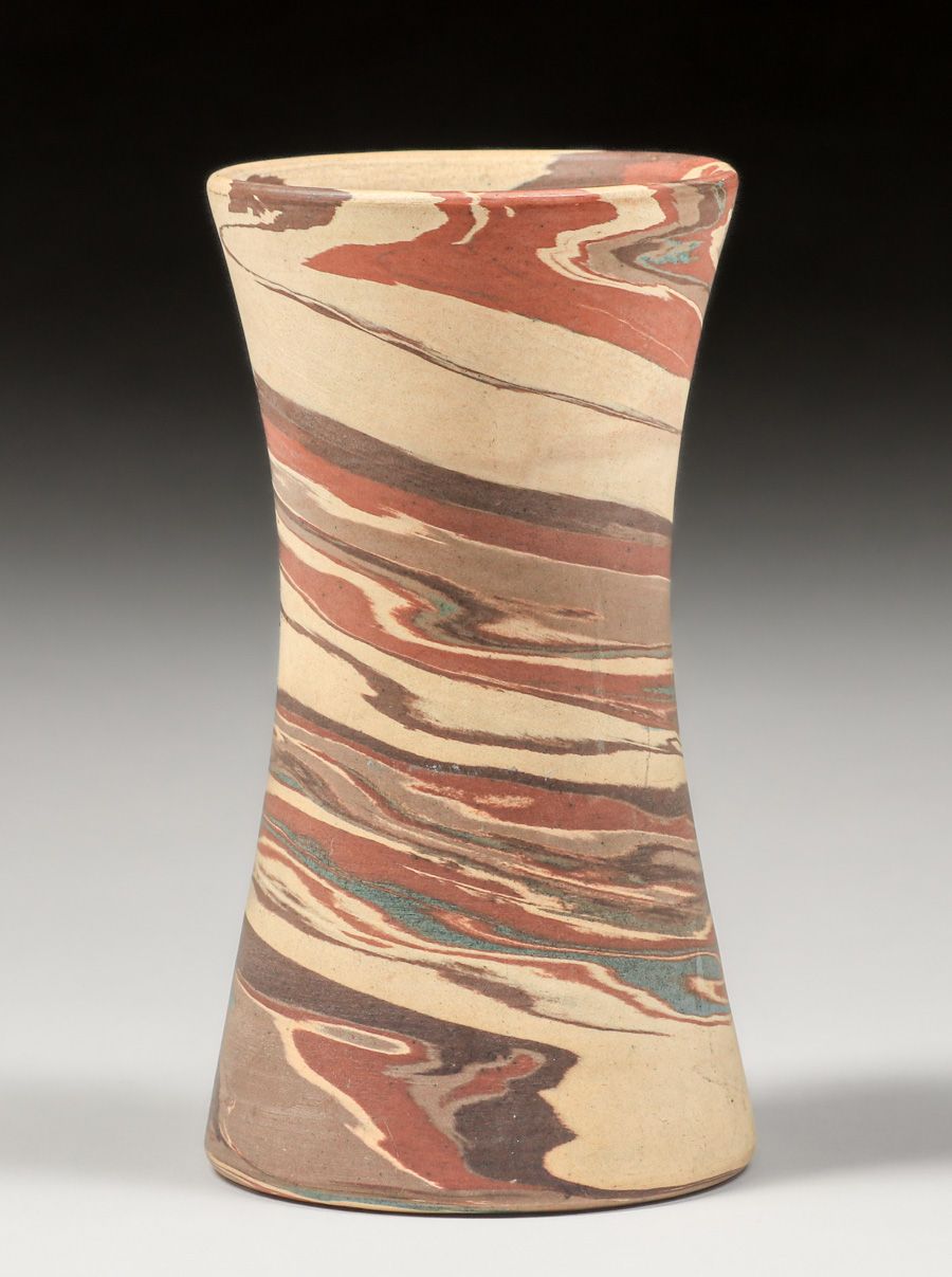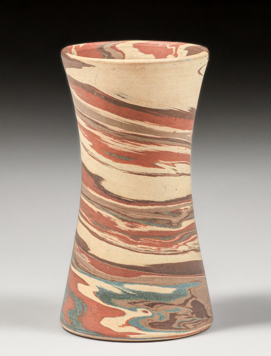 Niloak Pottery Corseted Mission Swirl Vase c1920s. Signed. Perfect condition. 6.25"h x 3.5"d SOLD