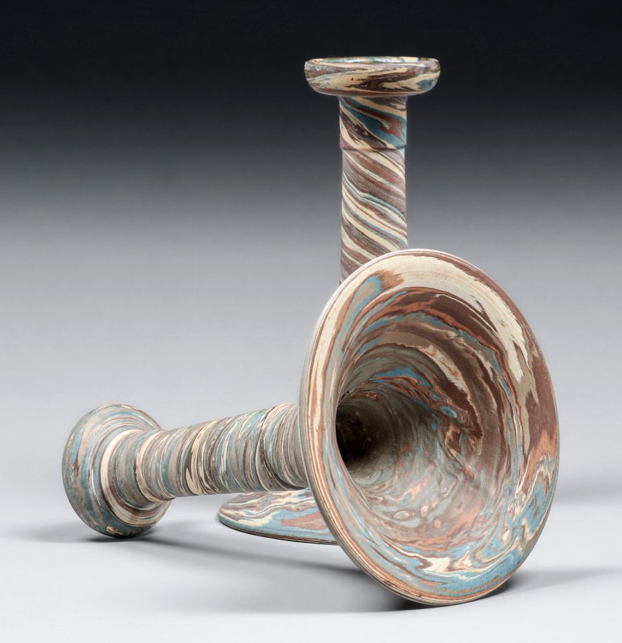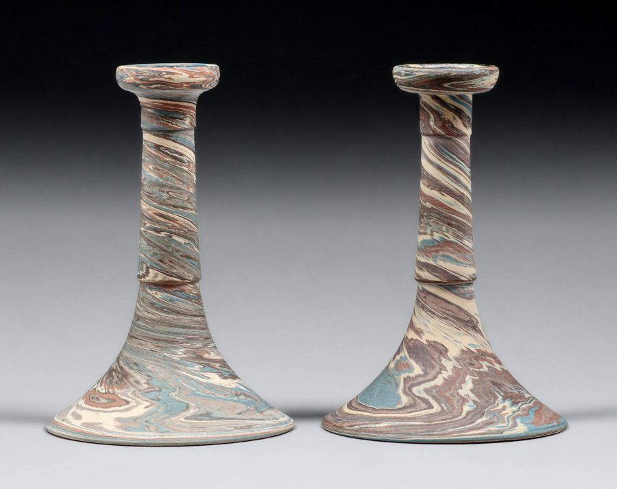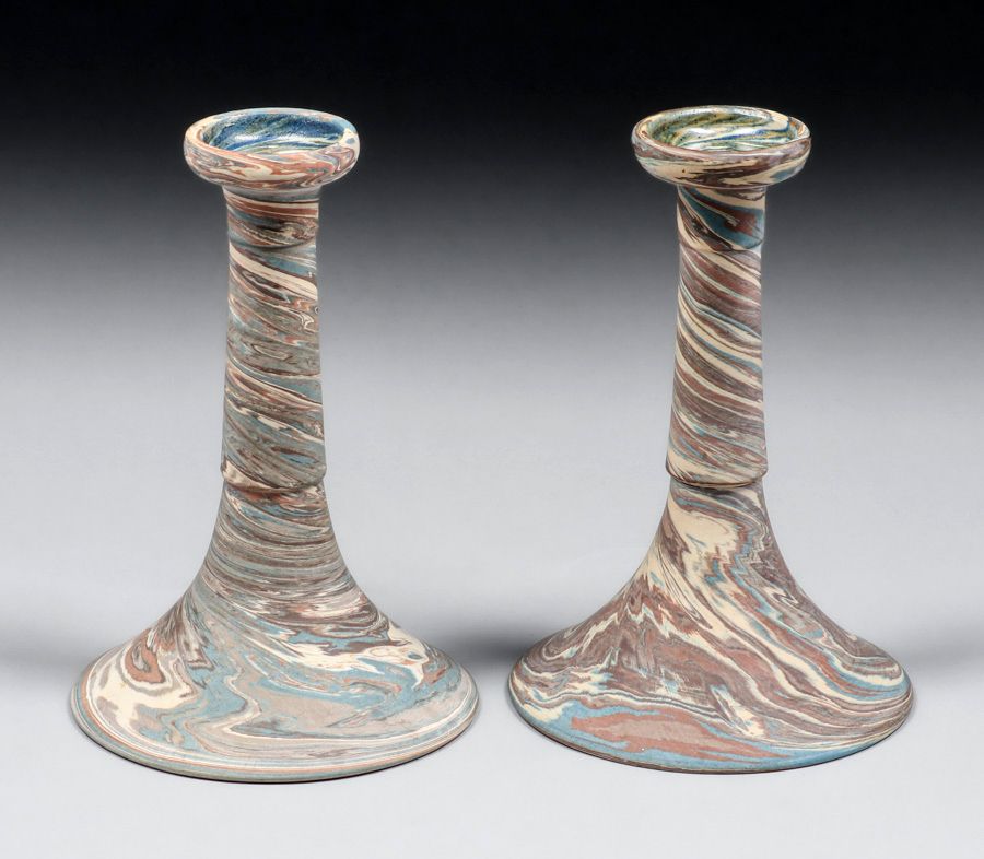 - Niloak Pottery Mission Swirl Candlesticks c1920s