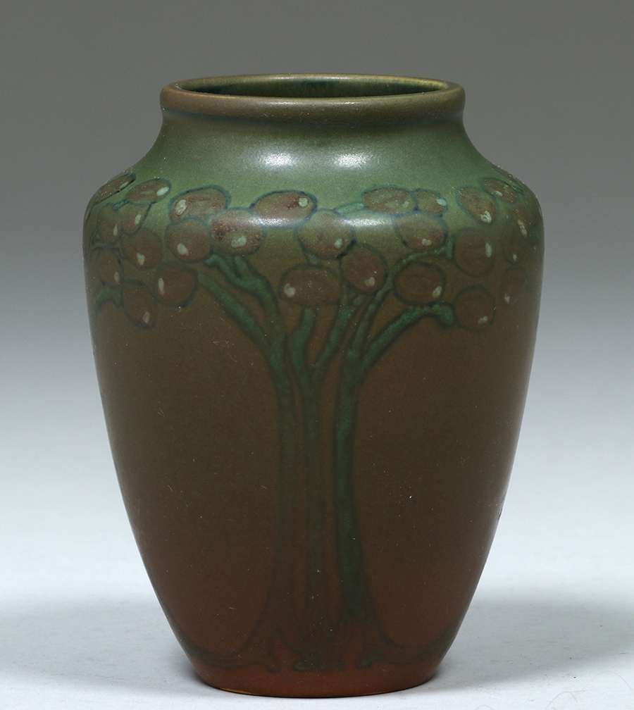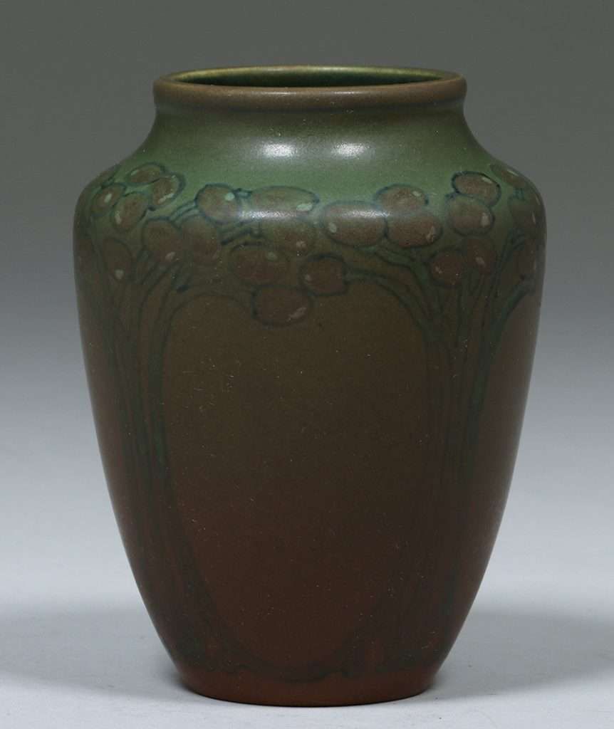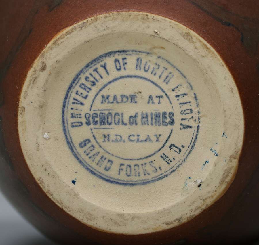 North Dakota School of Mines Decorated Vase c1915. Artist signed "Eggers". Perfect condition. 6.5"h x 4.5"d SOLD