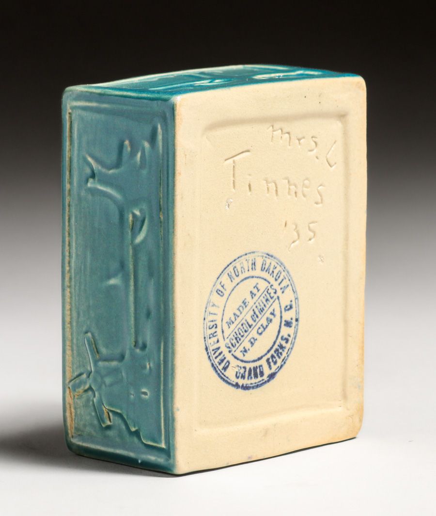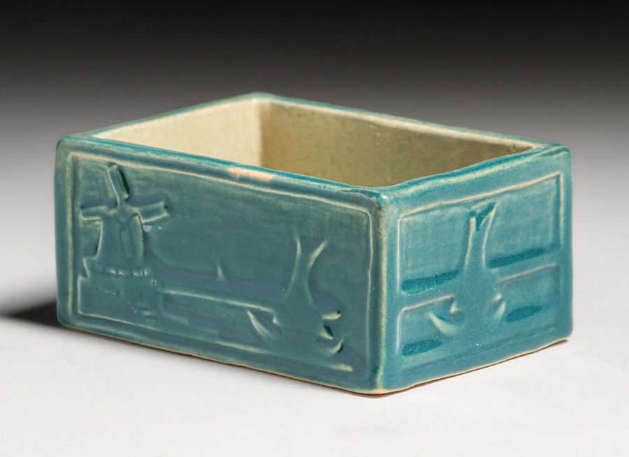 North Dakota School of Mines Dutch Windmill & Sailboat Carved Box 1935. Signed. Invisible professional restoration to small rim chip, otherwise perfect condition. SOLD