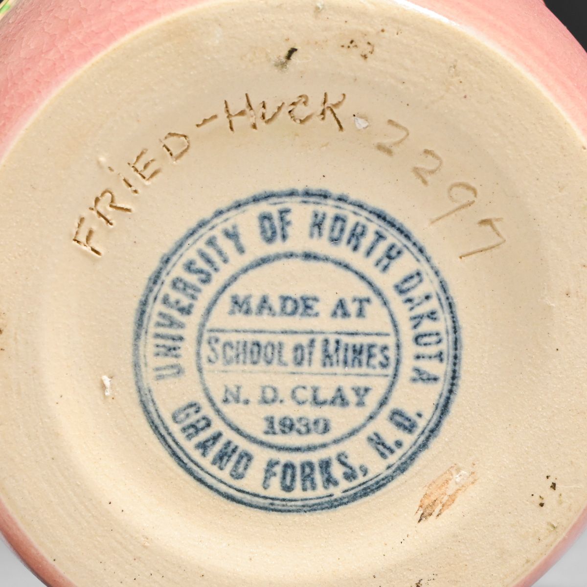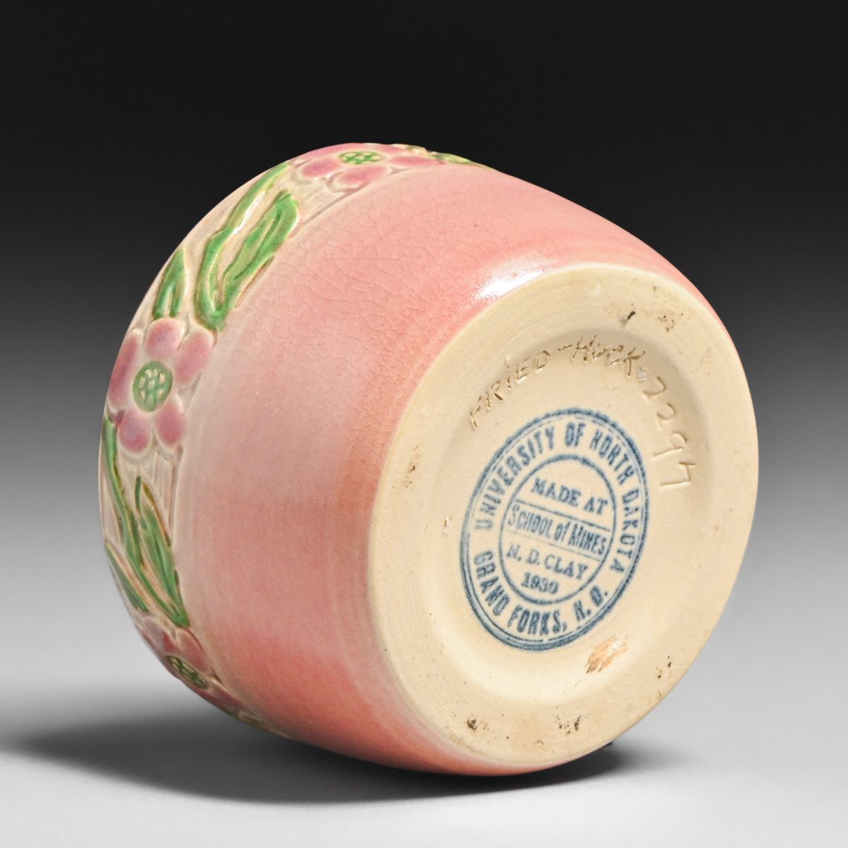 North Dakota School of Mines Floral Vase c1920s. Signed. Perfect condition. 3.5"d x 2.5"h