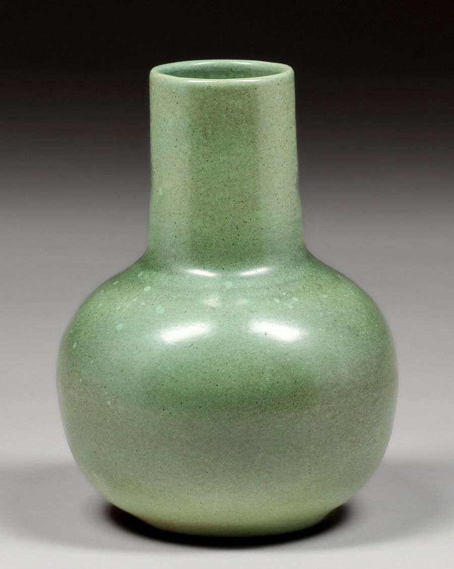 North Dakota School of Mines Julia Mattson Green Vase c1920s. Signed. Perfect condition. 8 1/8"h x 5.5"d SOLD