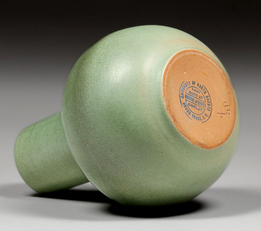 - North Dakota School of Mines Julia Mattson Green Vase c1920s