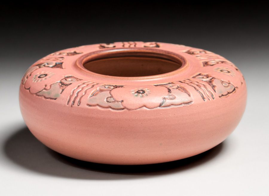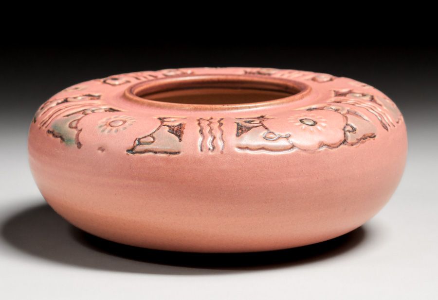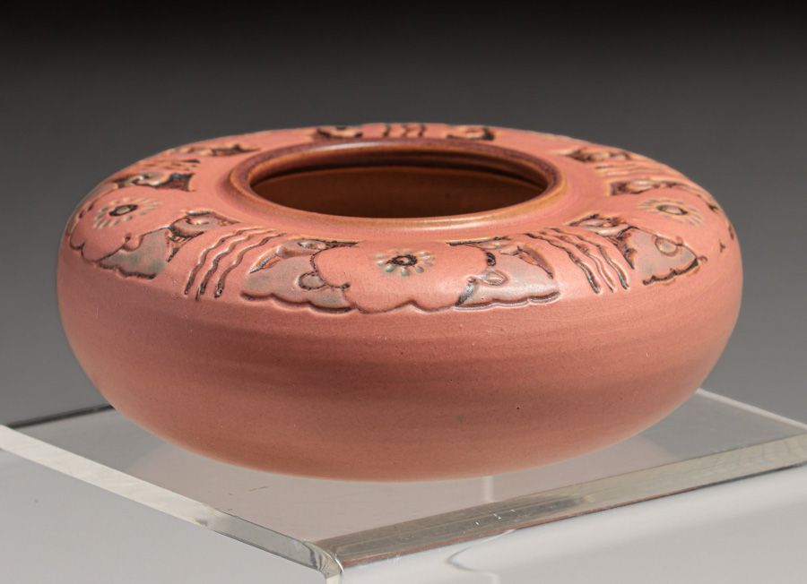 North Dakota School of Mines Margaret Cable Prairie Rose Closed Bowl c1920s. Signed. Perfect condition. 6 3/8"d x 2.75"h SOLD
