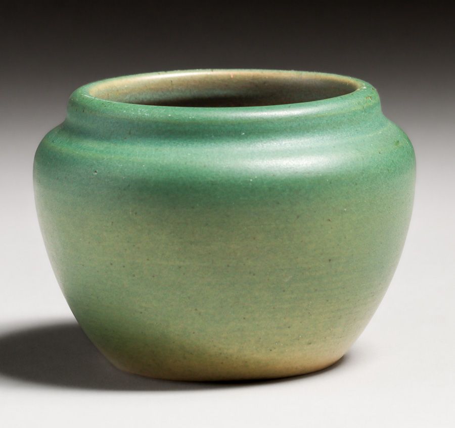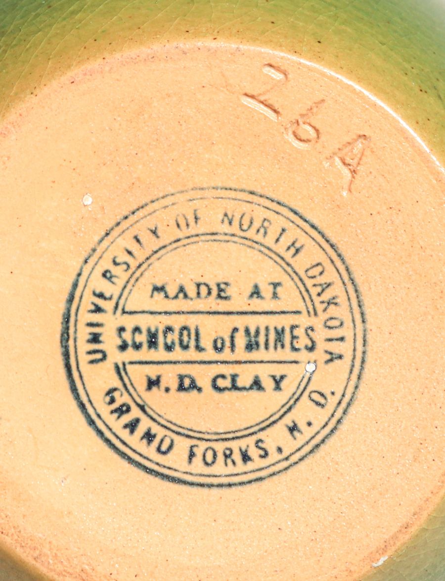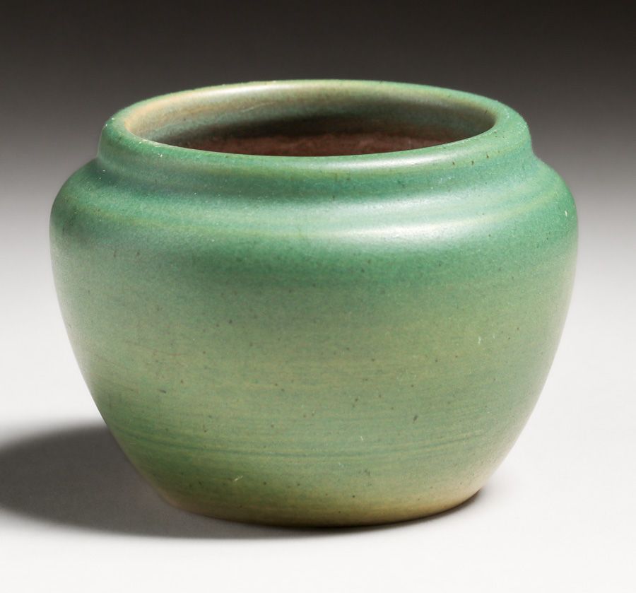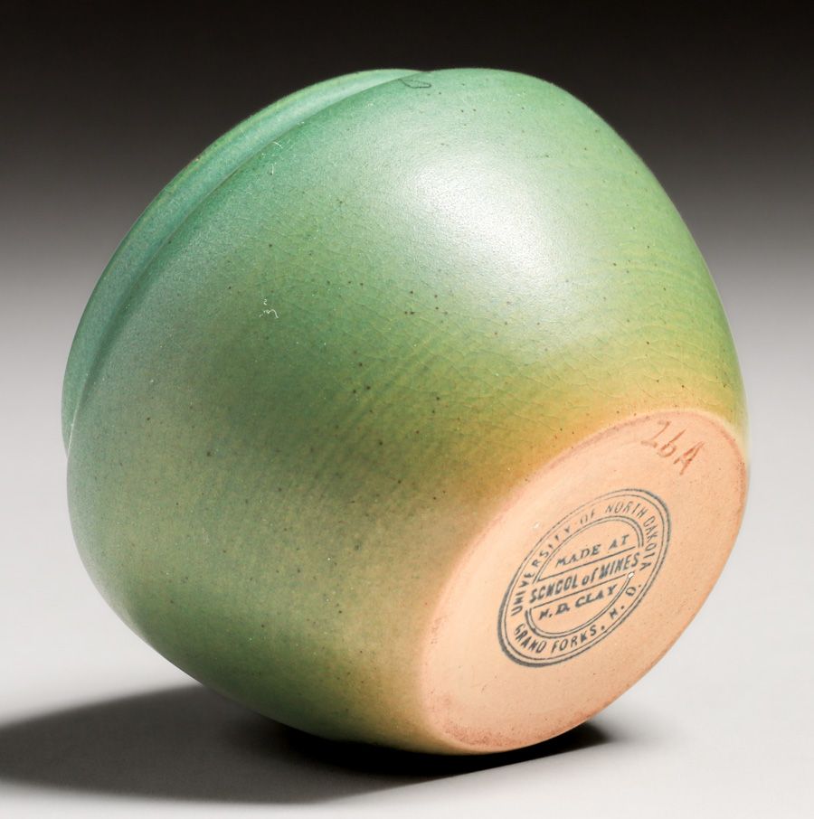 North Dakota School of Mines Matte Green Vase c1920s. Signed. Perfect condition. 4"d x 3"h SOLD