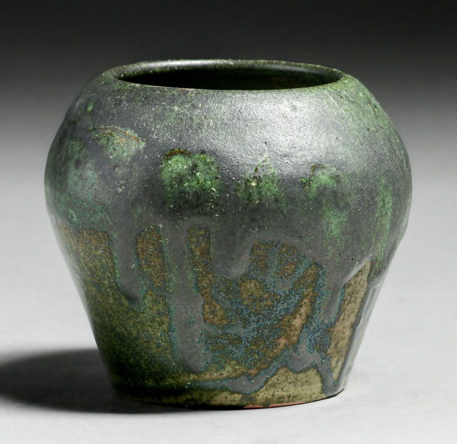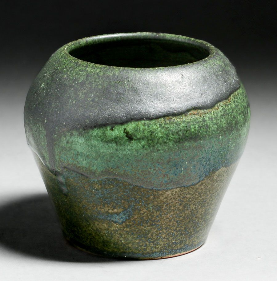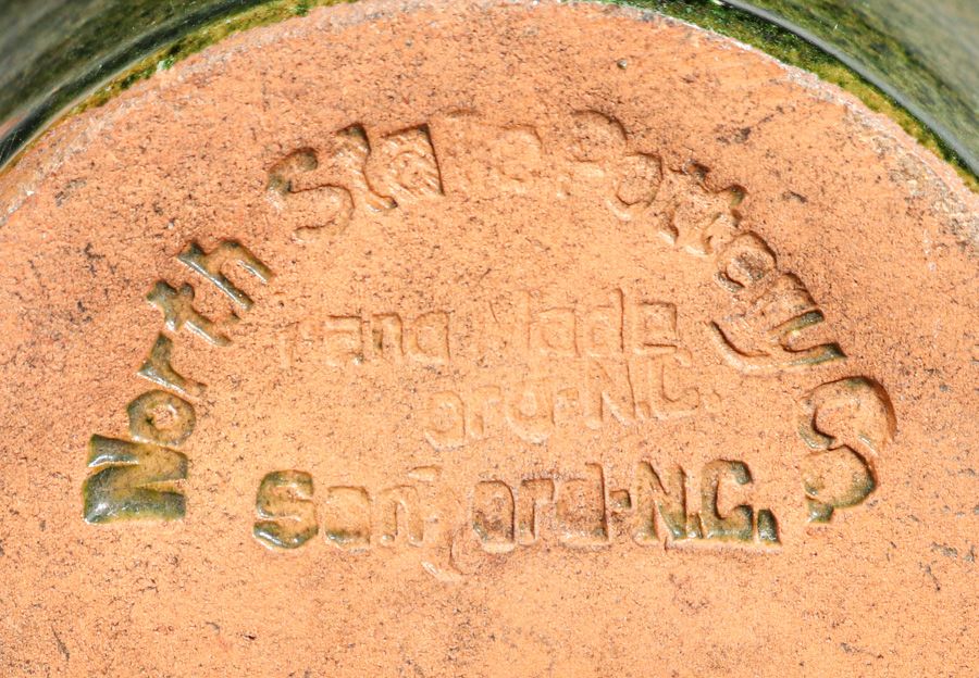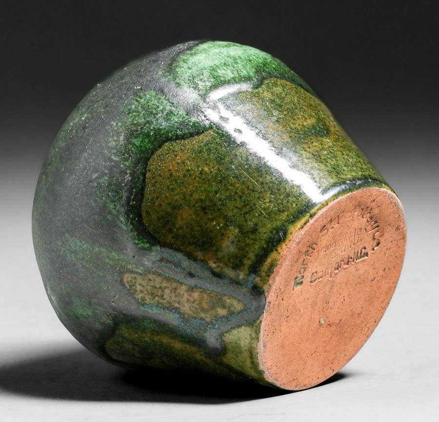 North State Pottery (Sanford, NC) Green Drip Vase c1924-1935. Signed. Perfect condition. 4.5″d x 4″h SOLD