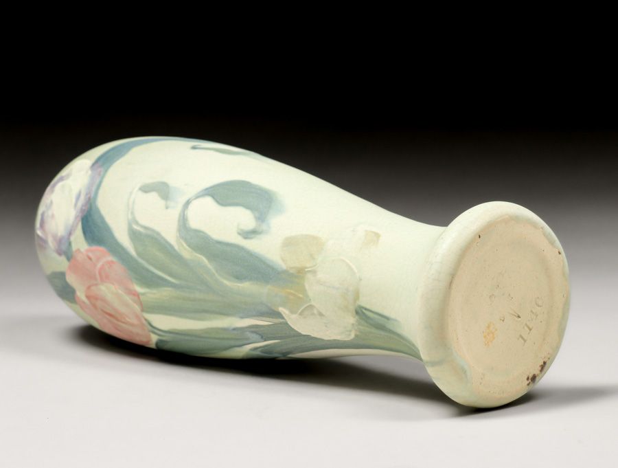 Owens Pottery #1146 Parchment Floral Vase c1900s. Signed. Perfect condition. 12.5"h x 3.75"d $950