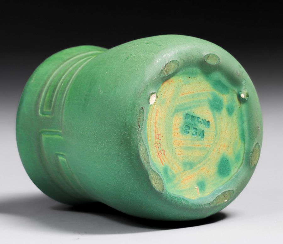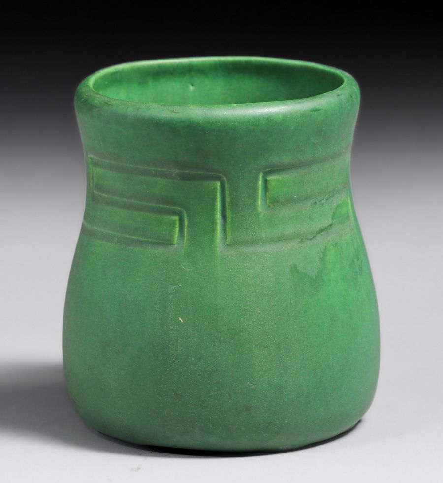 Owens Pottery #234 Matte Green Vase c1910. Signed. Perfect condition. 4.75"h x 4"d SOLD