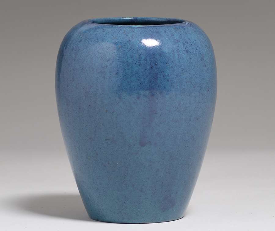 Paul Revere Pottery - Boston blue vase c1920s. Signed. Perfect condition. 6.75"h x 5.25"d SOLD
