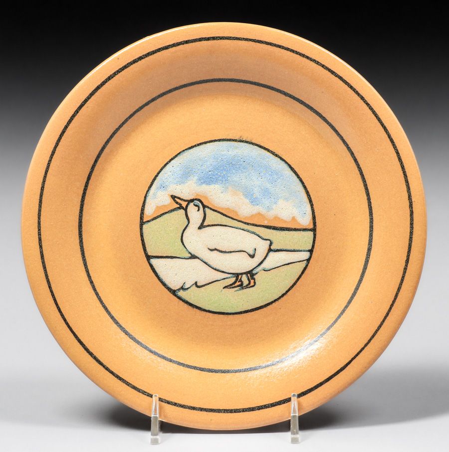 Paul Revere Pottery Duck Plate c1920s. Signed. Perfect condition. 7 5/8"d SOLD