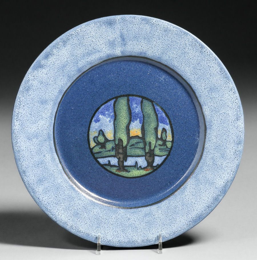 - Paul Revere Pottery Lili Shapiro Arthur Wesley Dow Influenced Double Tree Landscape Decorated Plate 1926