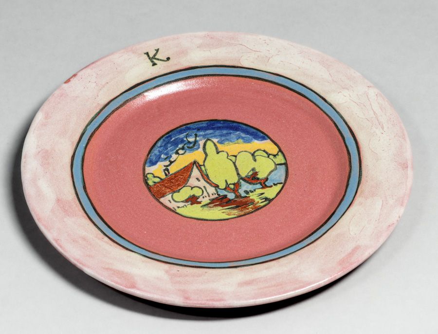 - Paul Revere Pottery Lily Shapiro Landscape Decorated Plate 1931