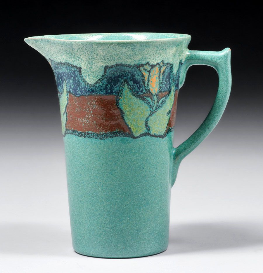 - Paul Revere Pottery One-Handled Tulip Decorated Pitcher 1926