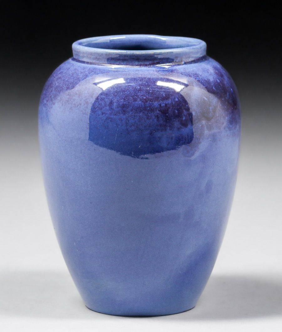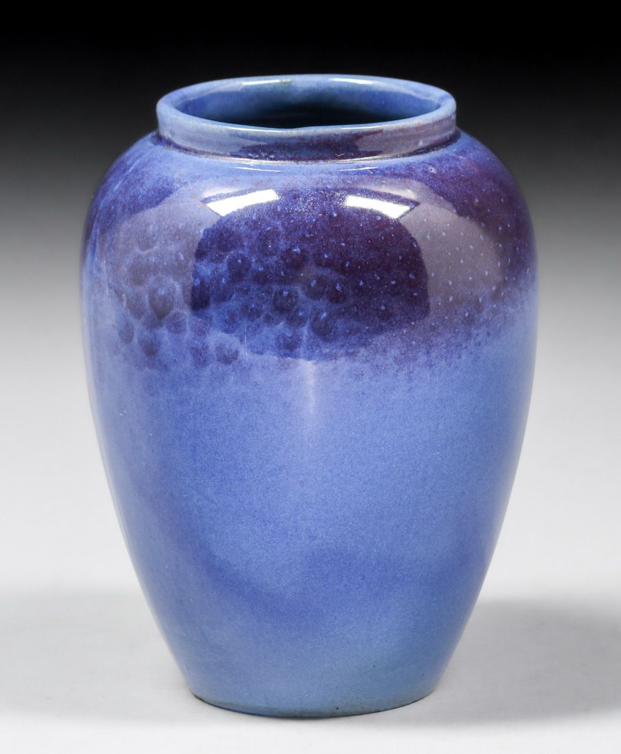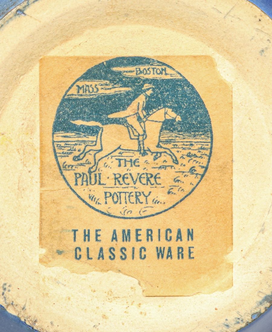 Paul Revere Pottery Vase c1920s. Faint design of stylized grapes. Signed. Perfect condition. 6"h x 4"d SOLD
