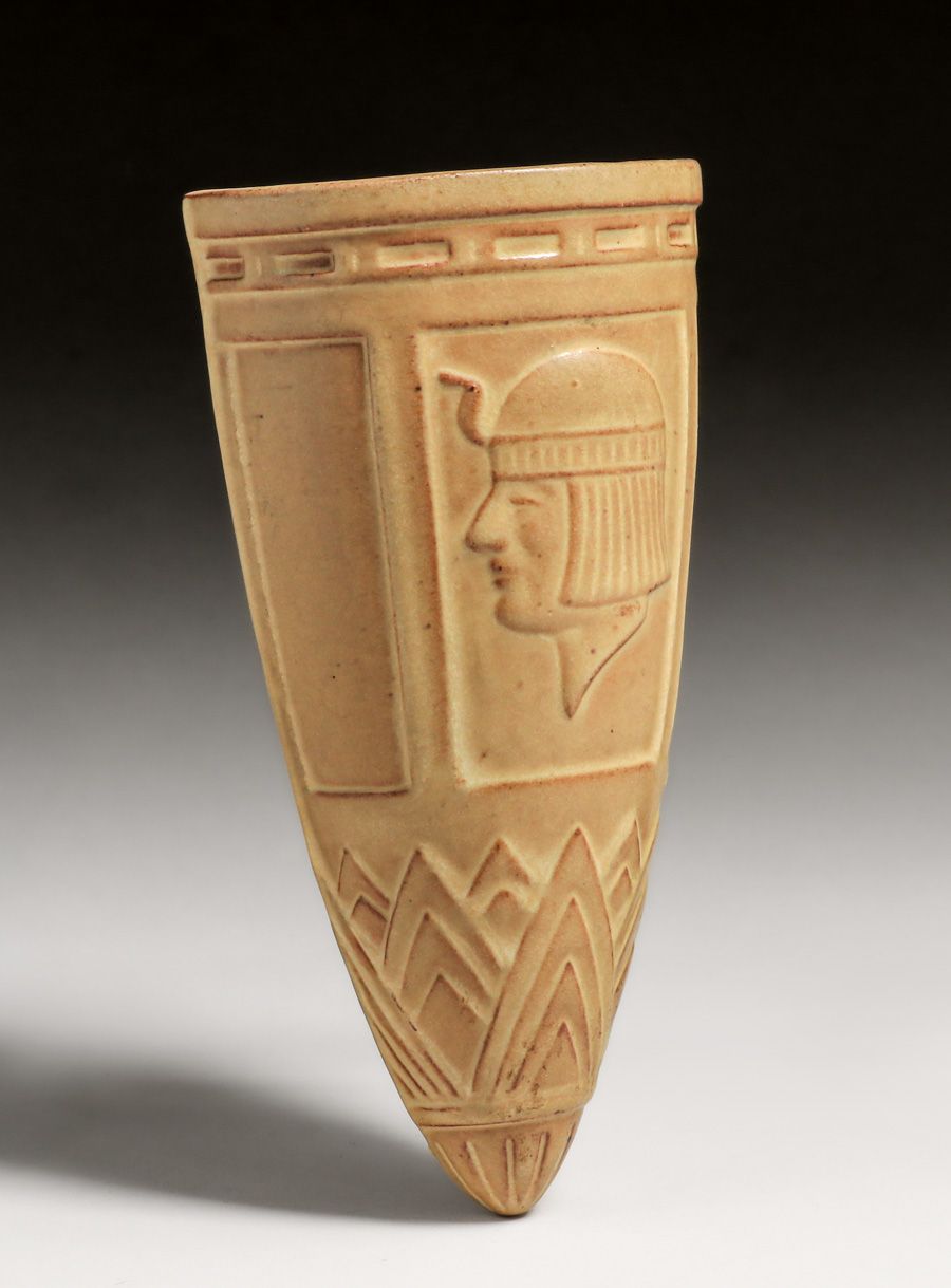 Peters & Reed Egyptian Revival Wall Pocket c1920s. Unsigned. Perfect condition. 8"h x 3"w