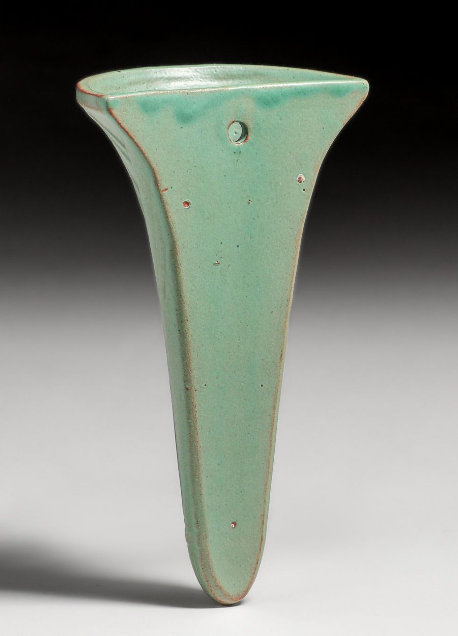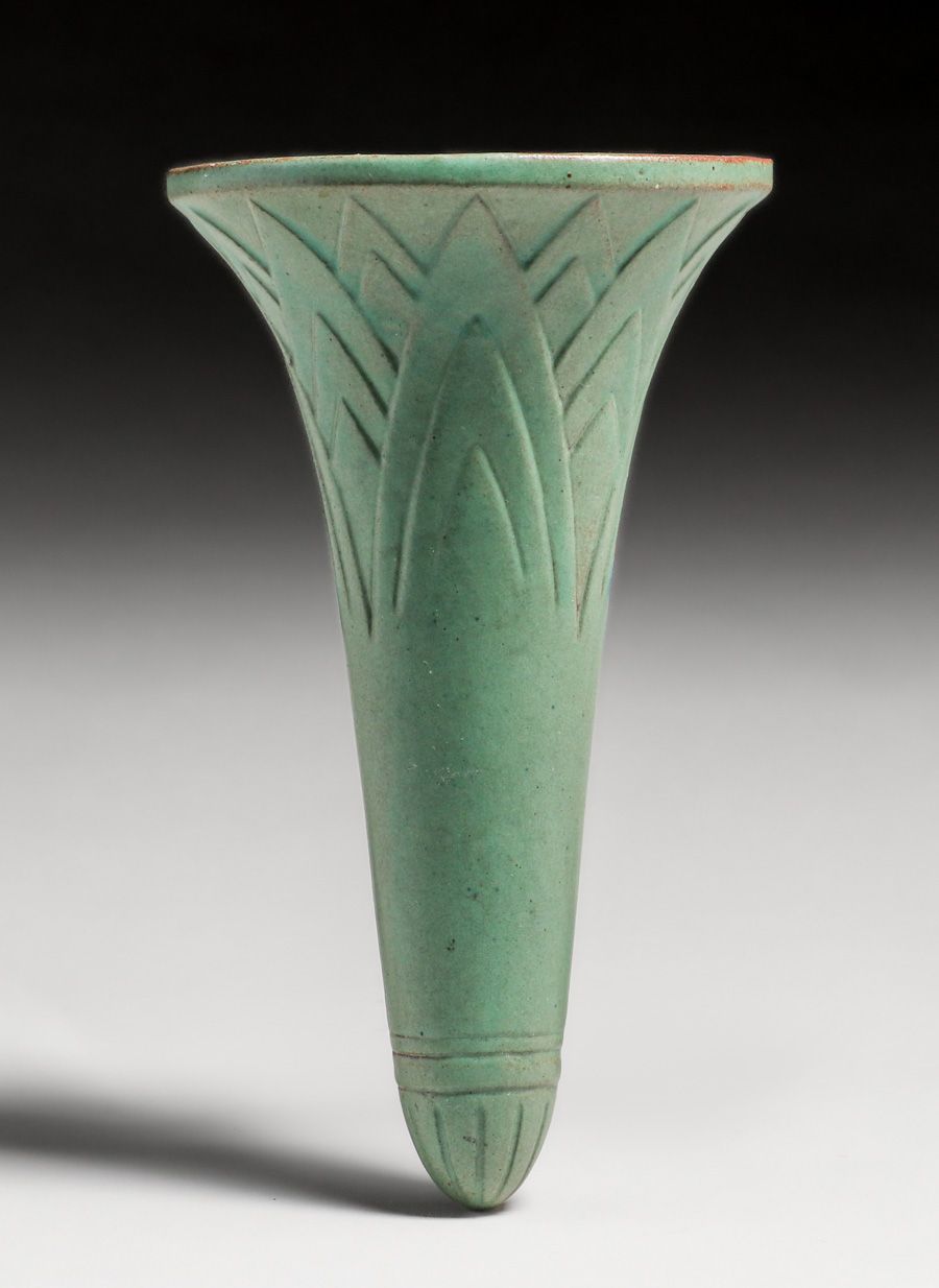 Peters & Reed - Zanesville, Ohio Matte Green Wall Pocket c1920s. Unsigned. Perfect condition. 8"h x 4.5"w x 2.5"d $375