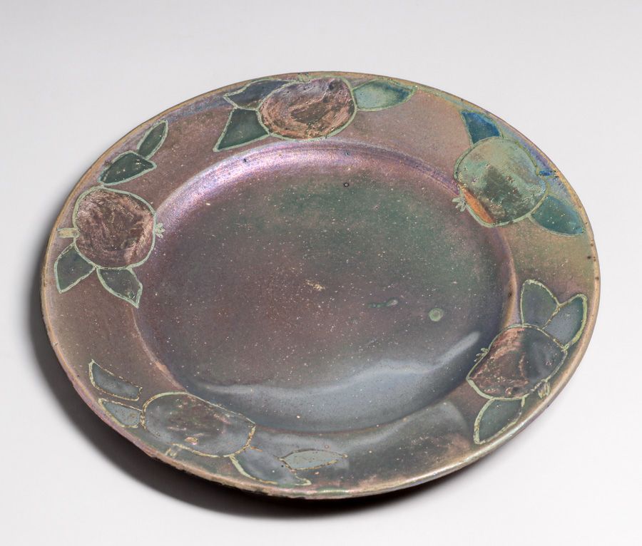 - Early Pewabic Pottery Iridescent Apple Blossom Plate c1910