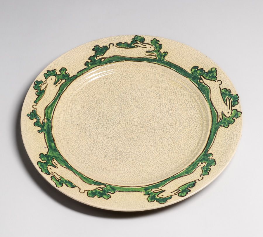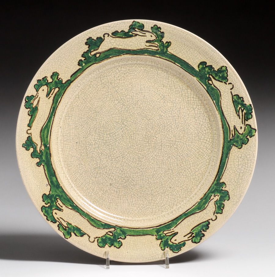 - Early Pewabic Pottery Iridescent Crackleware Rabbit Plate c1910