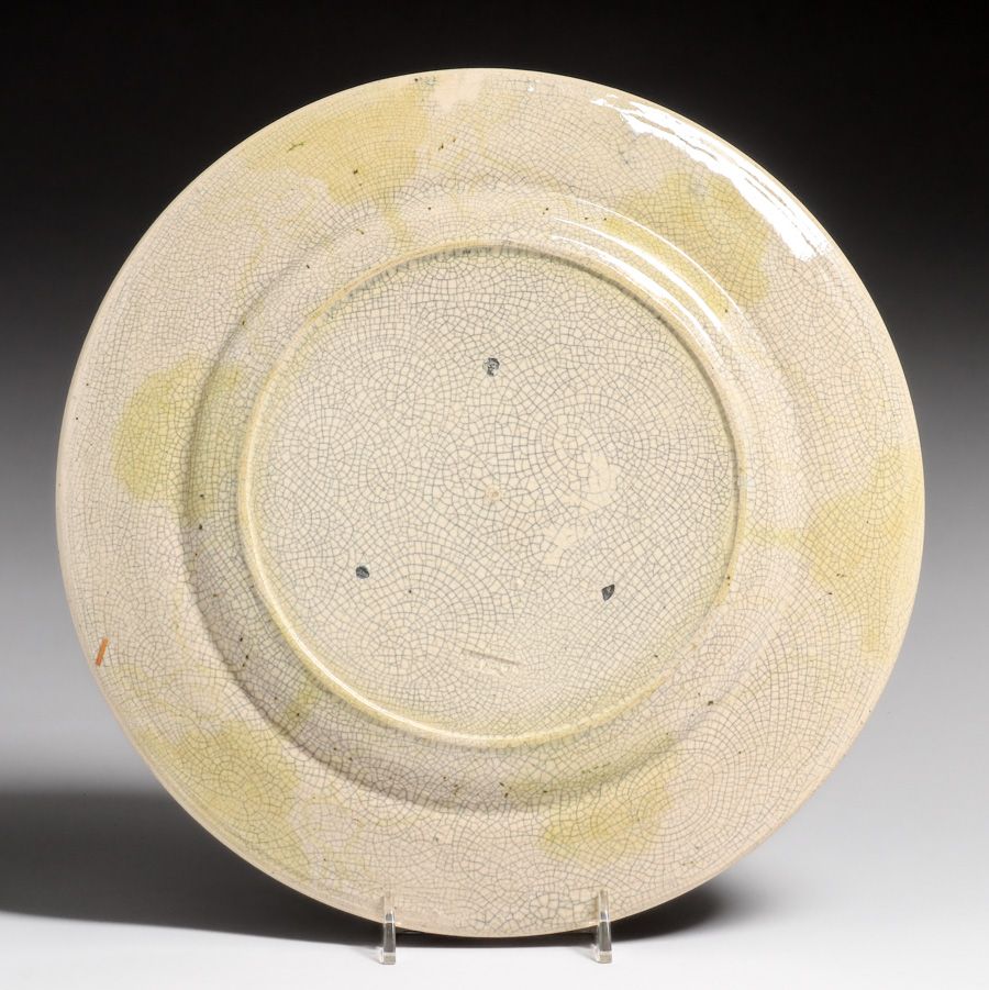 Early Pewabic Pottery Iridescent Crackleware Rabbit Plate c1910. Signed. Perfect condition. 10.75”d $2200