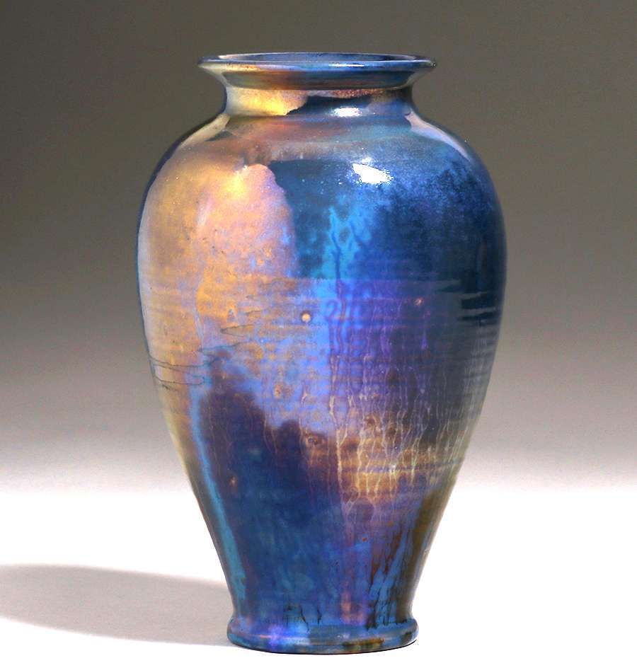 - Large Pewabic Pottery Iridescent Blue Vase