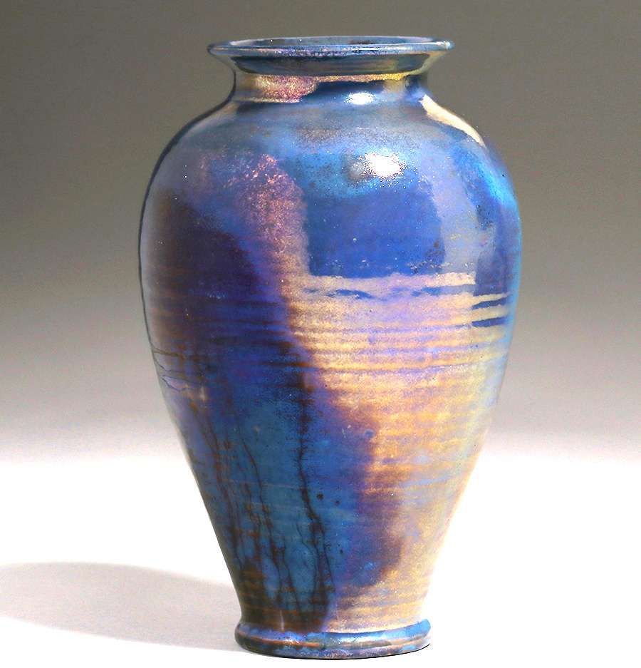 Large Pewabic Pottery Iridescent Blue Vase. Signed. Perfect condition. 10.5"h x 6"d SOLD