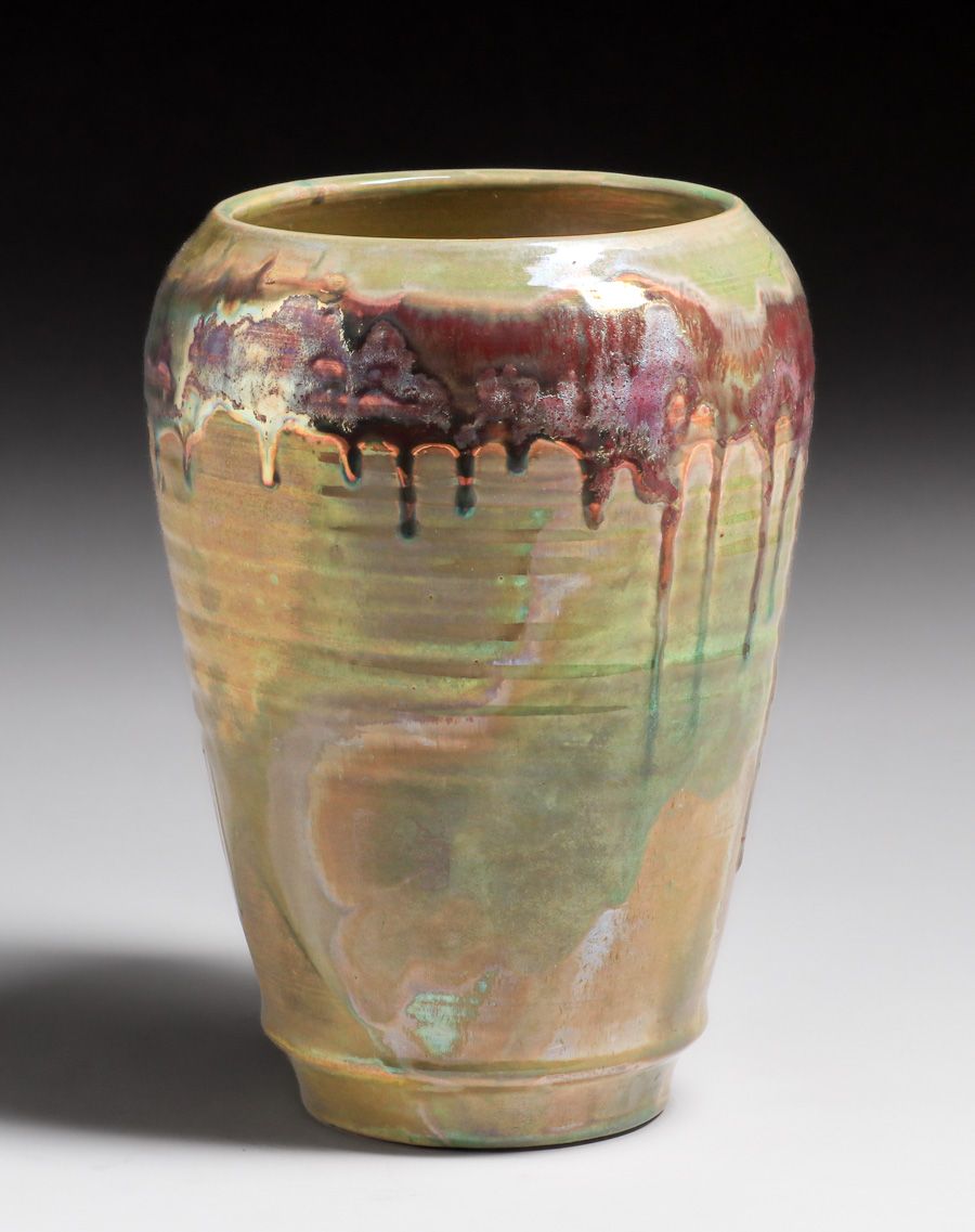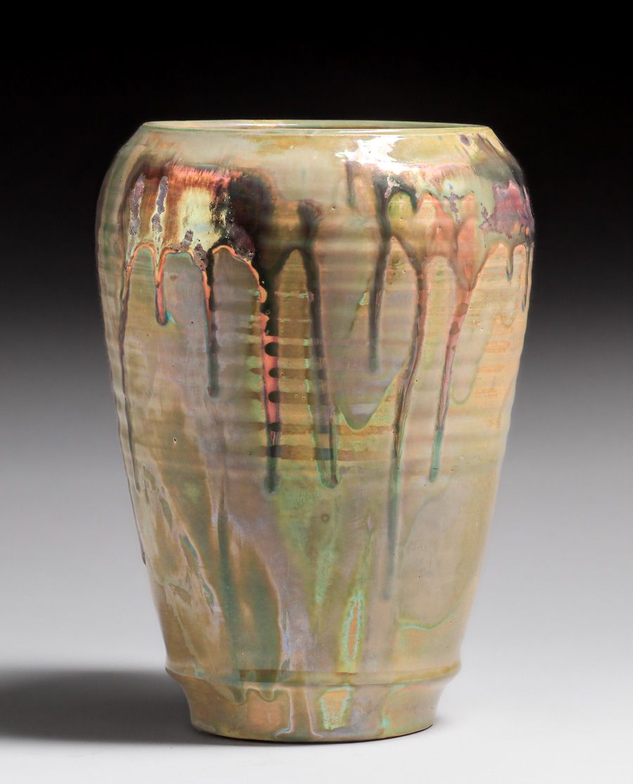 - Large Pewabic Pottery Iridescent Drip Vase c1920s