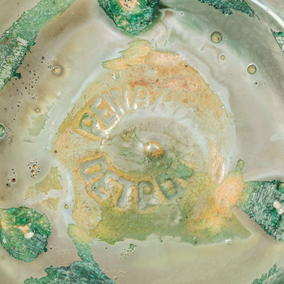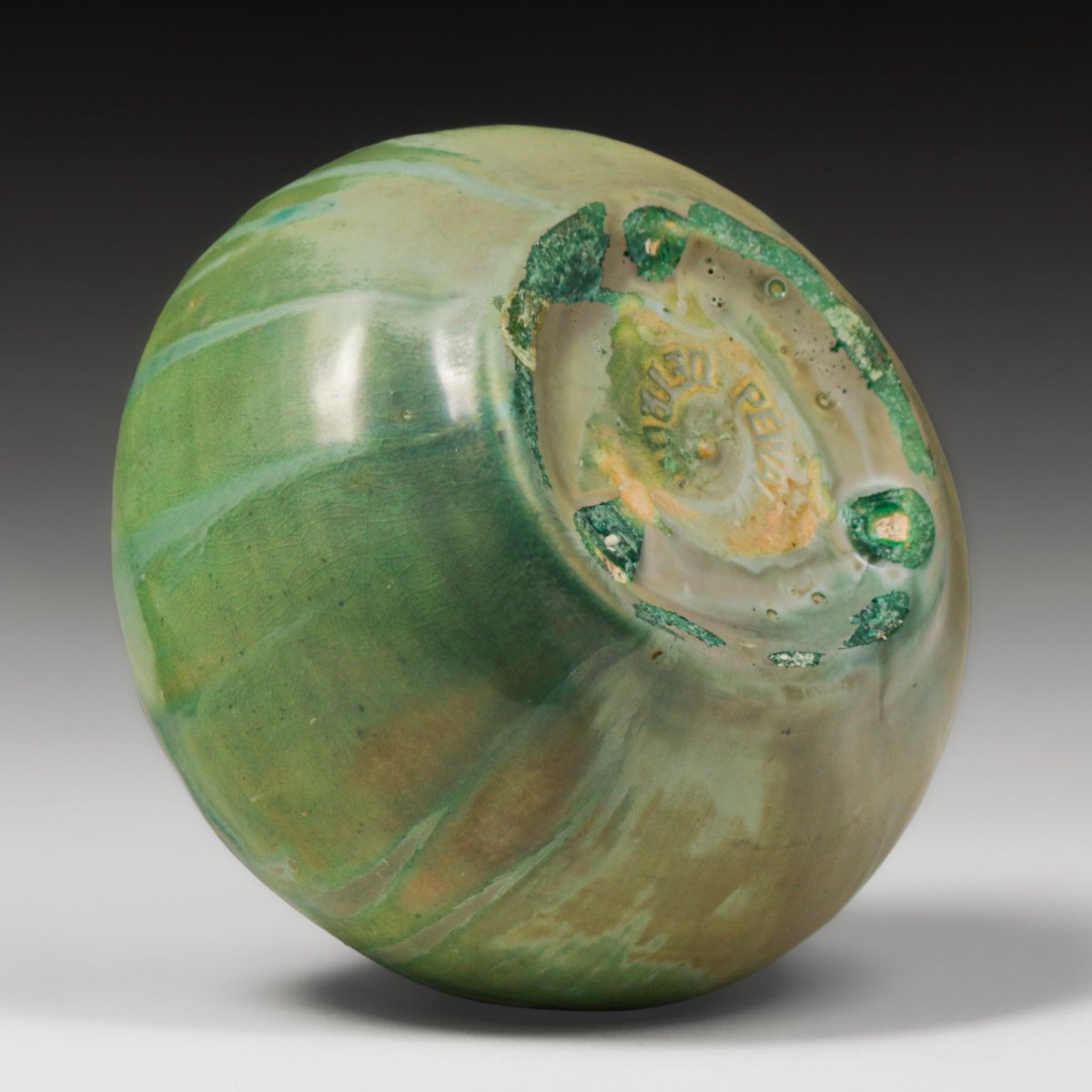 Pewabic Pottery Green & Blue Iridescent Drip Vase c1920s. Signed. Perfect condition. 3 5/8"d x 2 3/8"h
