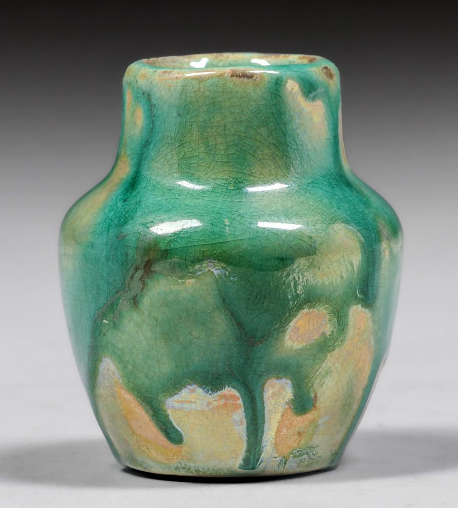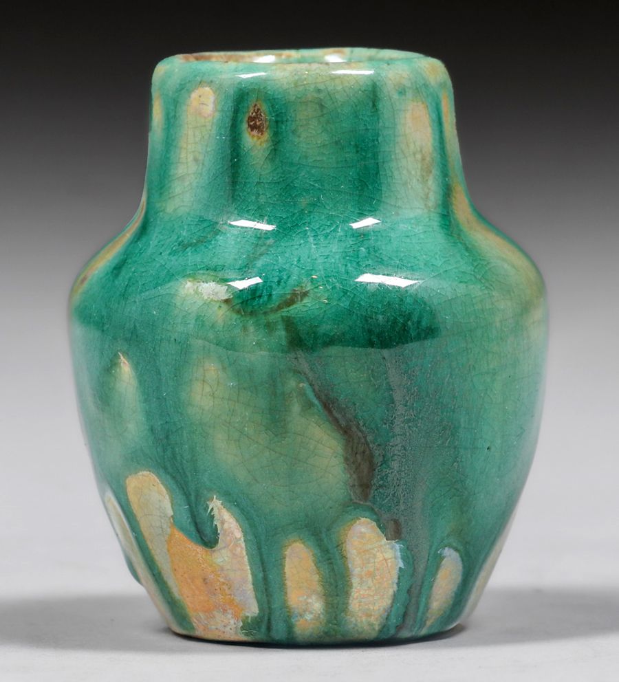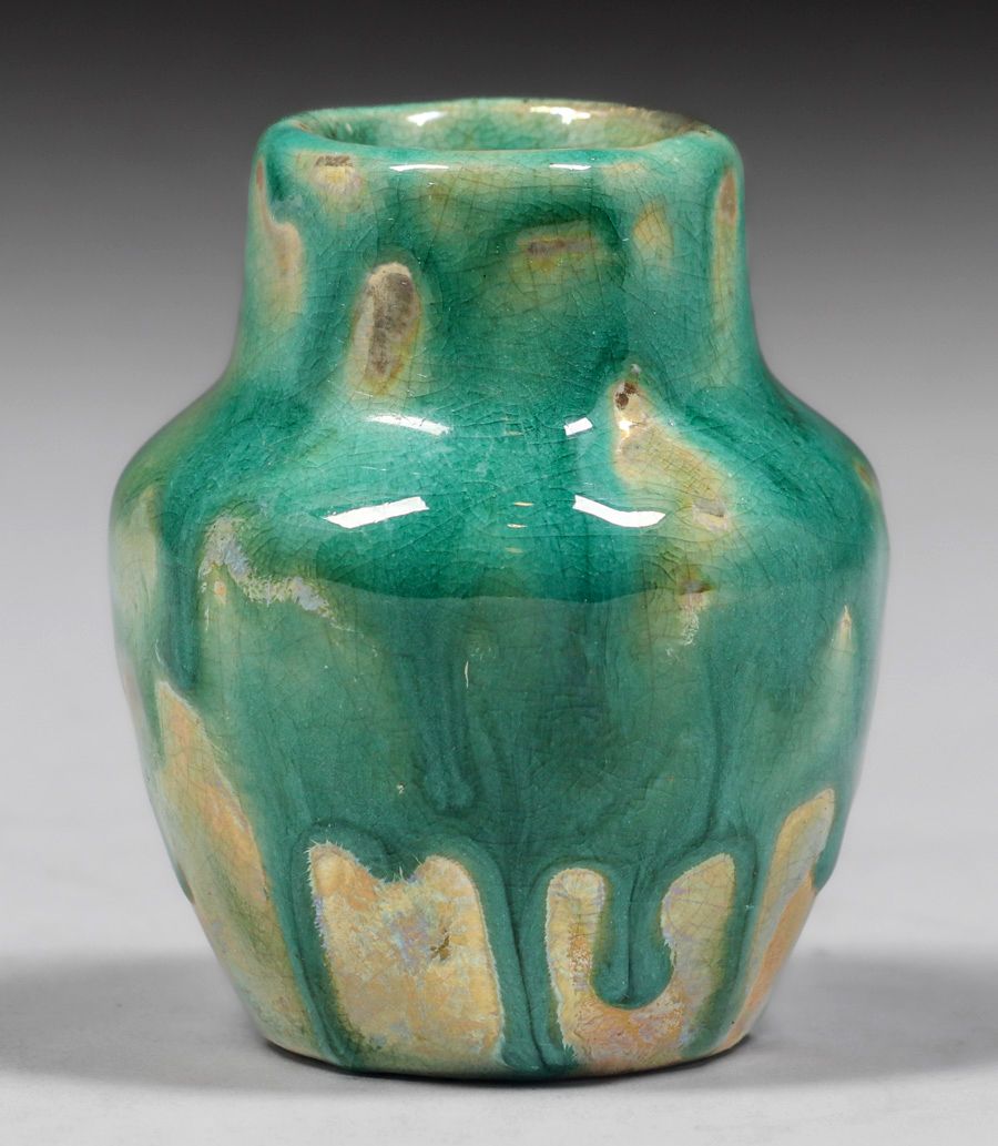 - Pewabic Pottery Green Drip Cabinet Vase c1920s