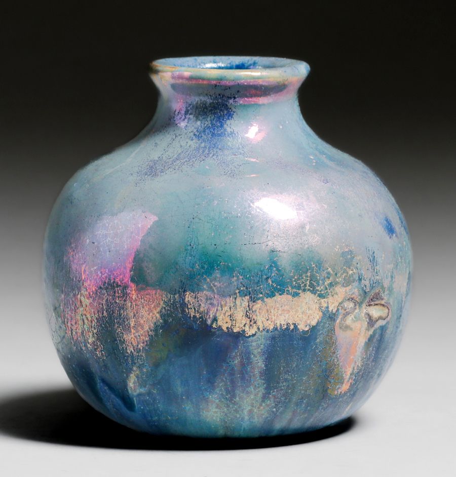 - Pewabic Pottery Iridescent Blue Bulbous Vase c1930s