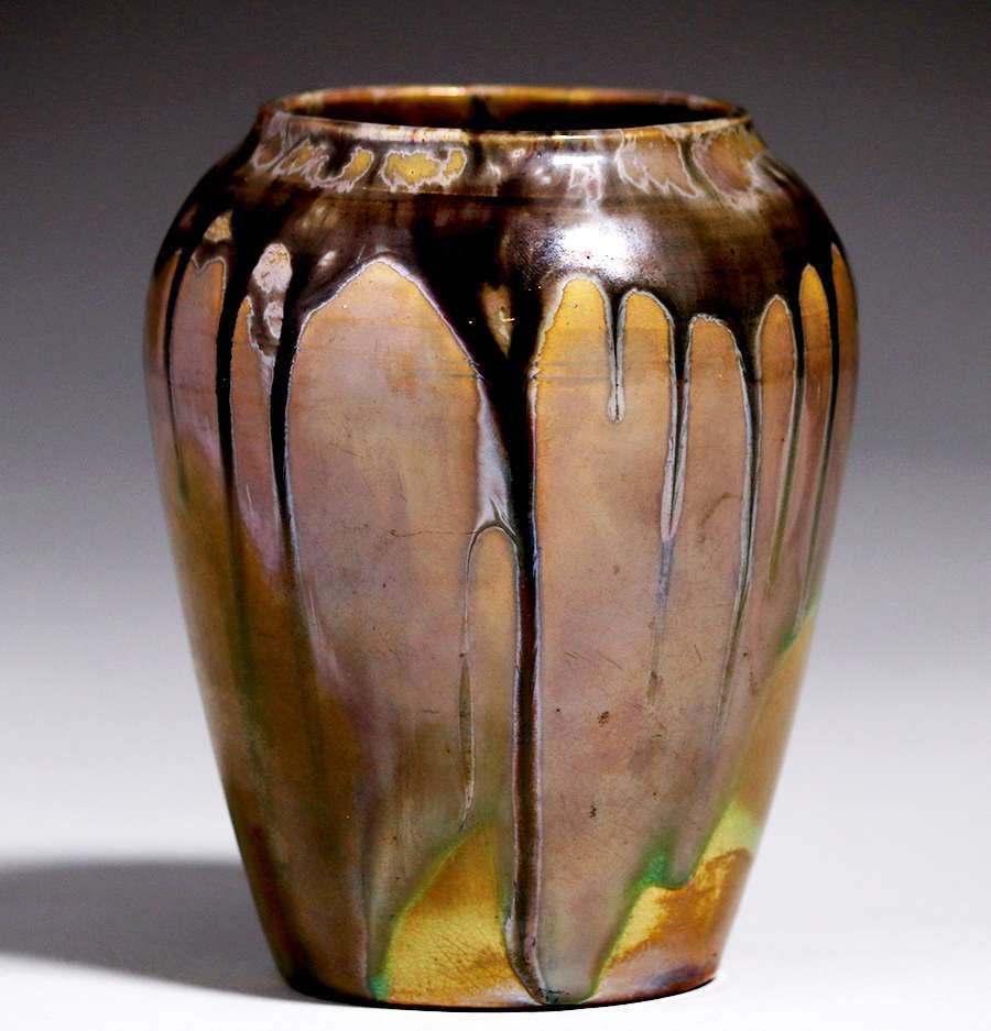 - Pewabic Pottery Iridescent Drip Glaze Vase