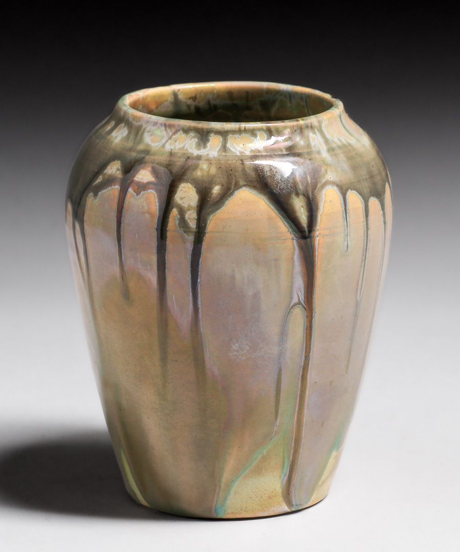 - Pewabic Pottery Iridescent Drip Glaze Vase c1920s