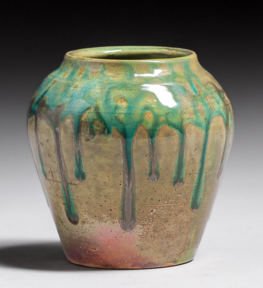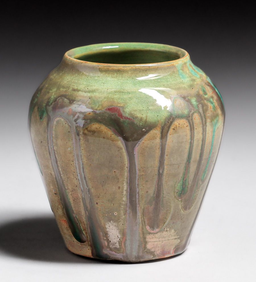 Pewabic Pottery Iridescent Green Drip Vase c1920s. Signed. Perfect condition. 3.5"h x 3.5"d $2800