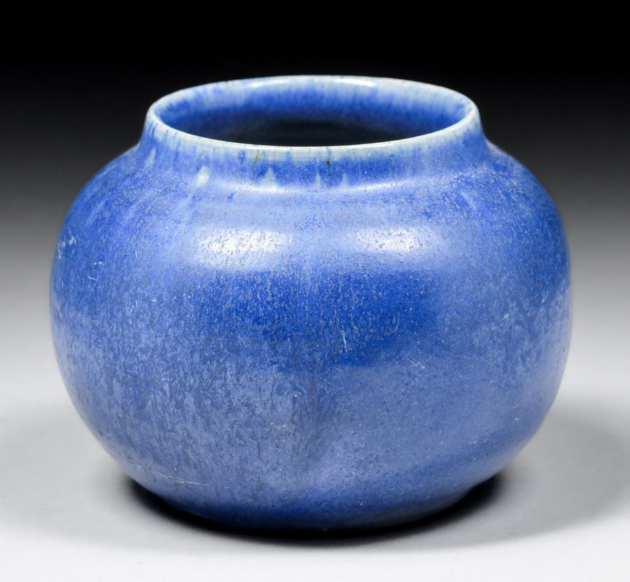 Pewabic Pottery Matte Blue Vase c1910s. Signed. Perfect condition. 4"d x 3.25"h SOLD