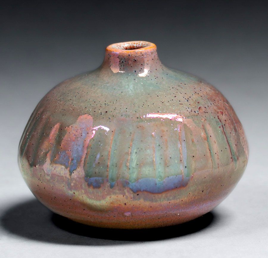 - Pewabic Pottery Small Iridescent Cabinet Vase c1930s