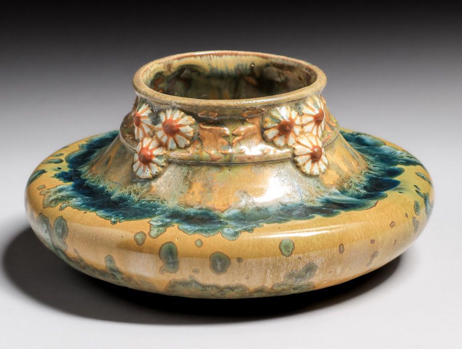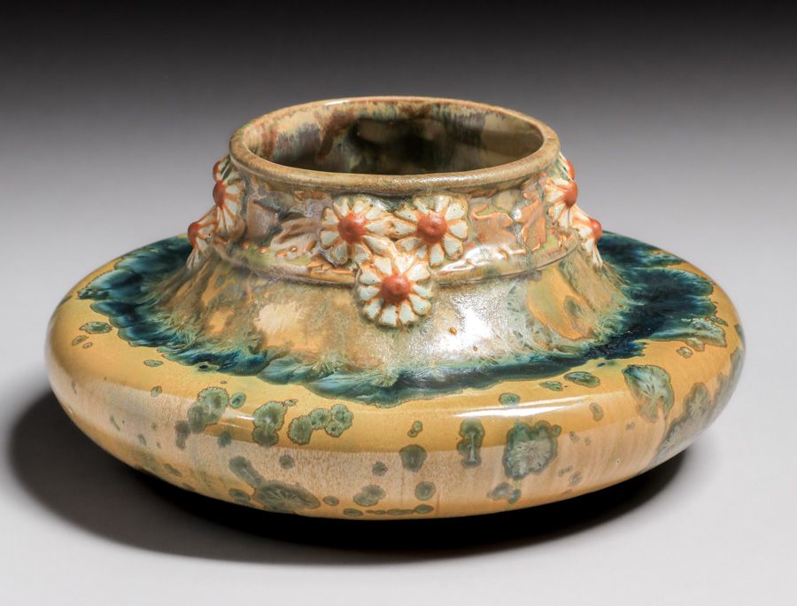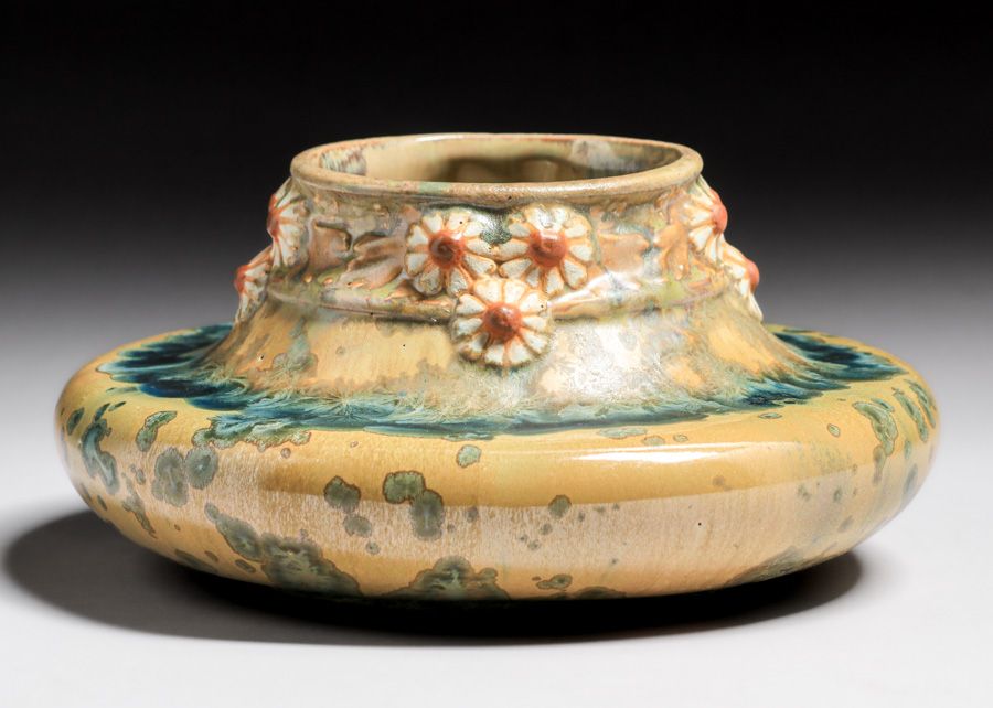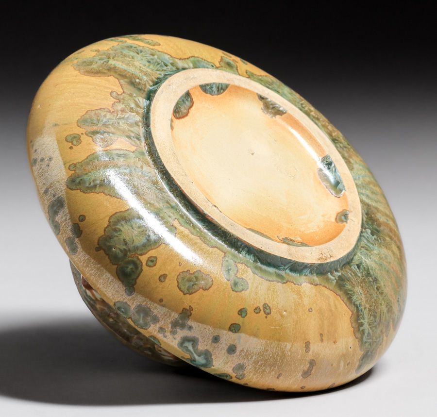 , Pierrefonds - French Crystalline Squat Floral Vase c1905. Signed. Perfect condition. 8"d x 3.75"h $2200