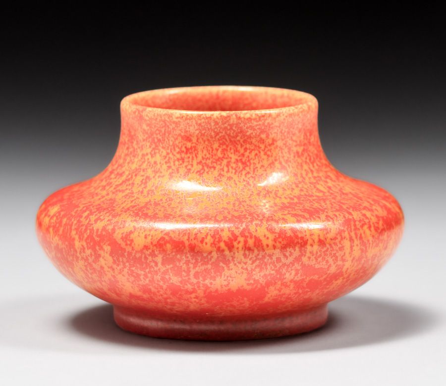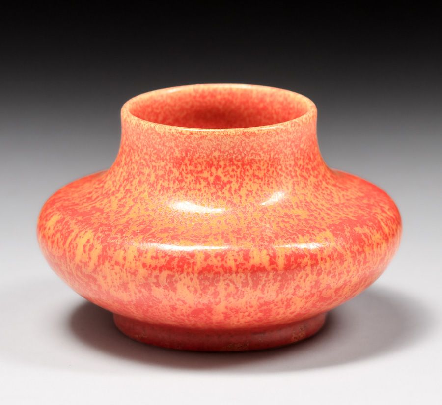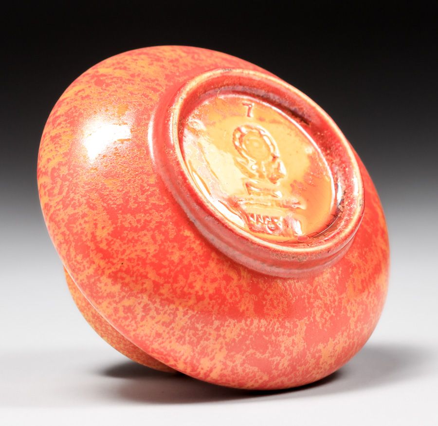 Pilkington Pottery Orange Lustre Vase c1920s. Signed. Perfect condition. 3.5”d x 2”h SOLD