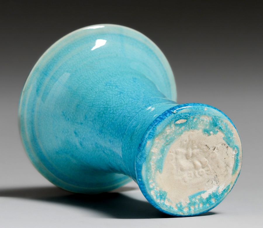 Pisgah Forest Flared Turquoise Vase c1930s. Signed. Perfect condition. 4.5h x 3 5/8d inches SOLD