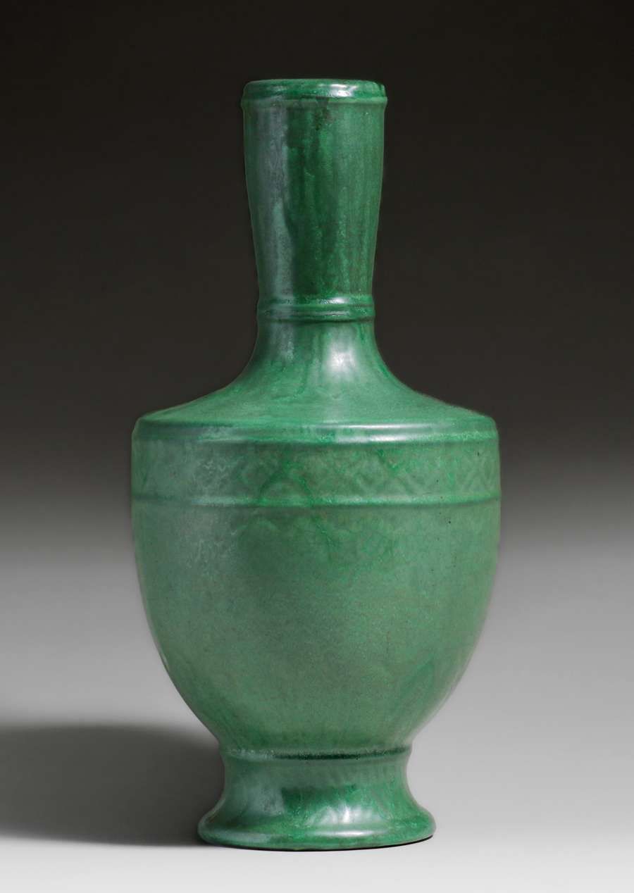 - Large Radford Radura - Clarksburg, West Virginia Egyptian Revival Matte Green Vase c1905