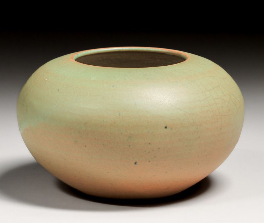 Frederick Rhead - Santa Barbara Matte Glazed Drip Vase c1913-1917. Signed. Perfect condition. 6.5"d x 4"h SOLD