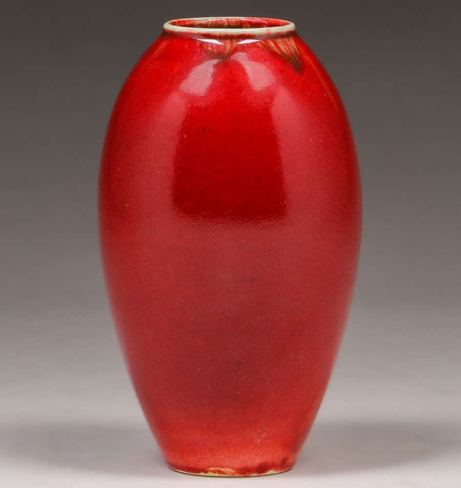 Robertson Hollywood Chinese Oxblood Glaze Vase c1920s. Signed. Perfect condition. 5.25"h x 3"d SOLD